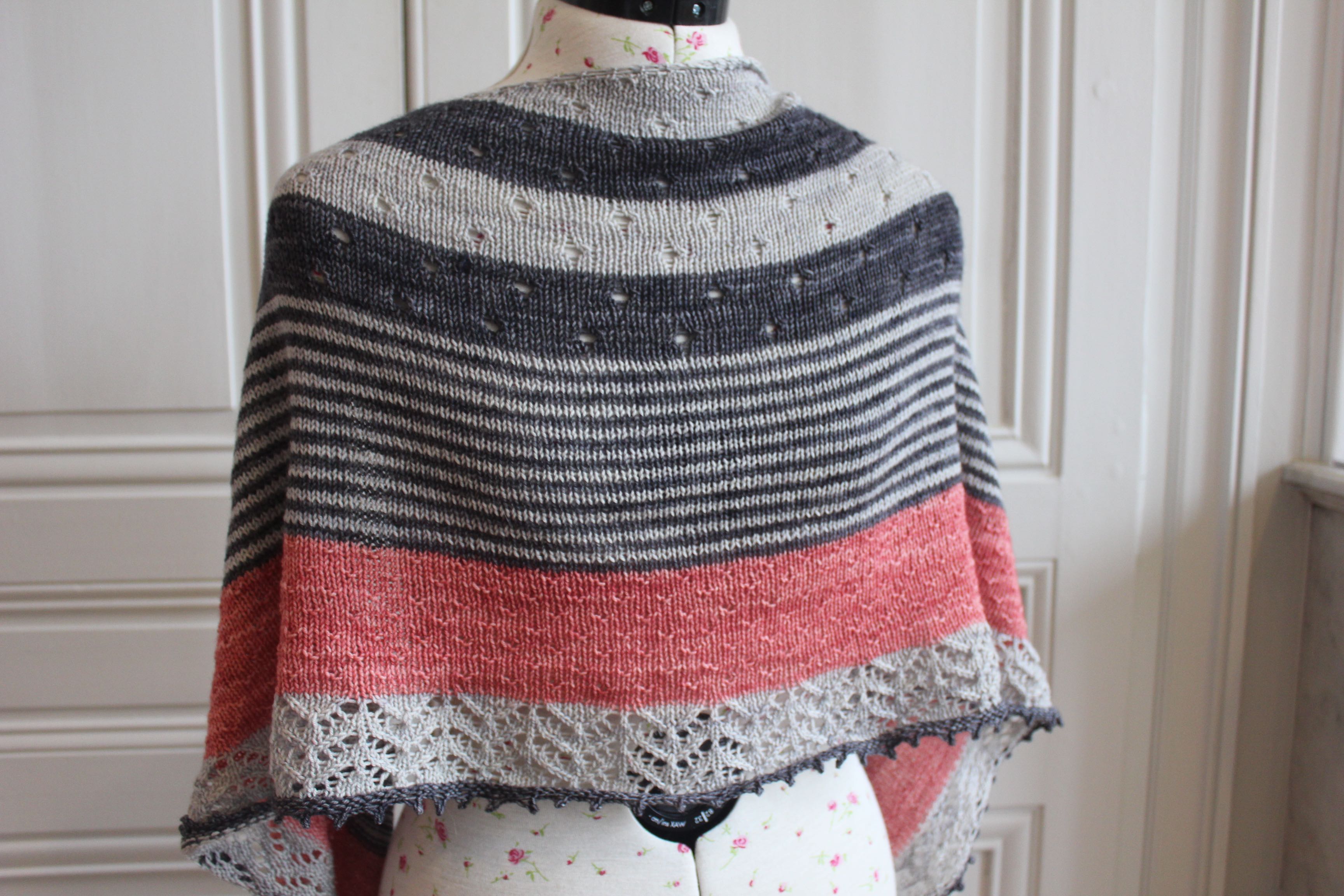 Au final, je suis enchantée par mon nouveau châle qui va être beaucoup porté mais je suis aussi bien contente de pouvoir passer à un autre projet plus agréable à tricoter.