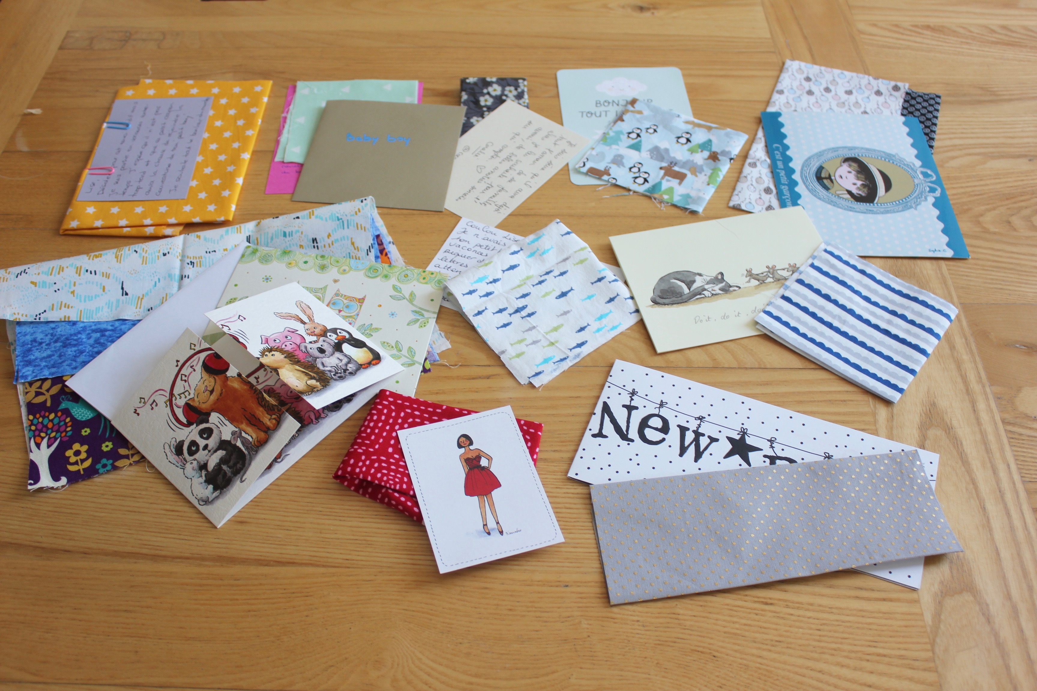 Je ne sais comment vous remercier. C’est une telle joie d’ouvrir vos lettres, de découvrir de merveilleuses cartes, certaines handmade en scrap booking. De voyager en Belgique, en Suisse mais aussi au Canada ! De goûter toutes les gourmandises que j’ai reçues. Offrir ses jolis cadeaux à Mathias qui en est tellement heureux !