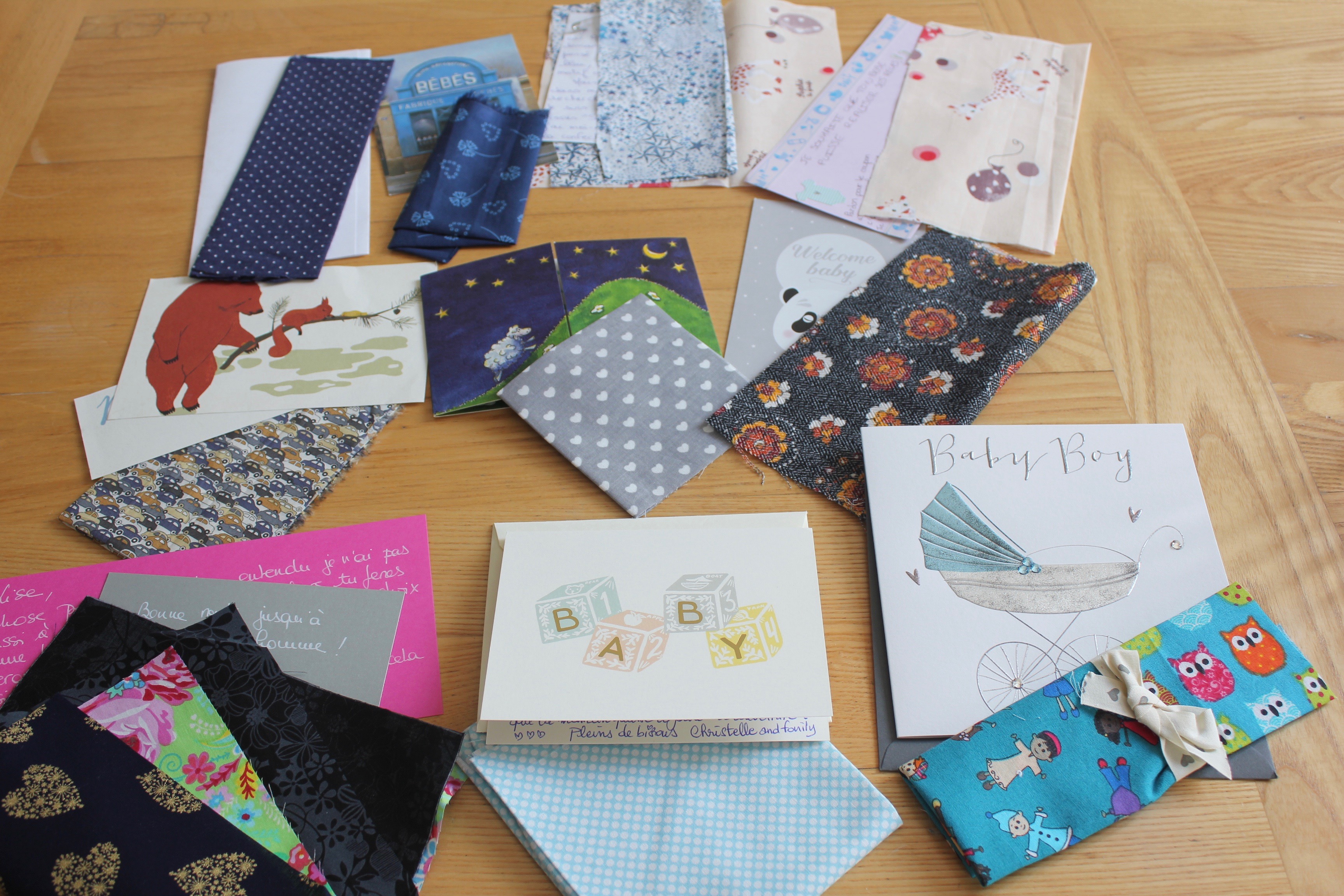 C’est très important pour moi de garder un trace du lien entre une carte (et son voeux) et le coupon correspondant. Le fait que chacun soit maintenant numéroté va me permettre de réaliser une « carte » de correspondance quand j’assemblerai la couverture. Je tiens à pouvoir dire, quand notre fils sera en âge de comprendre, que tel morceau correspond à tel voeux.