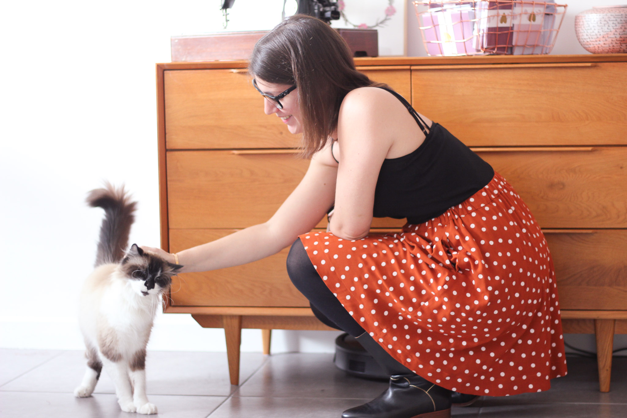 Après les fleurs, je vous propose de passer aux pois. J’adore les tissus à pois mais aucun ne trouve jamais grâce à mes yeux. J’ai donc eu envie de concevoir ma version du tissu à pois parfait. J’espère de tout coeur qu’elle va vous plaire autant qu’à moi !