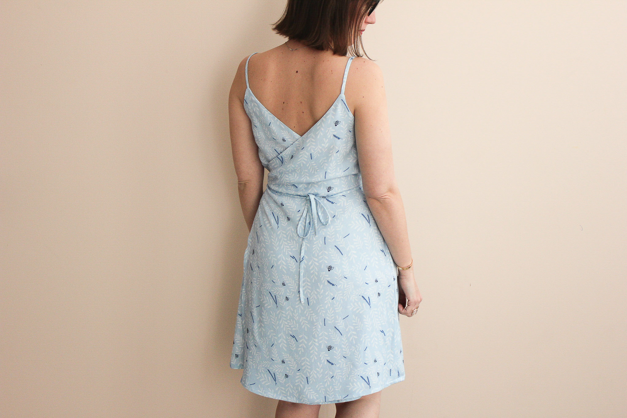 J’aime beaucoup cette petite robe que je trouve très seyante, féminine et agréable à porter. Tout est bien pensé et conçu à mes yeux. Le décolleté qui tombe juste bien. Les bretelles très fines. J’adore le lien à la taille qui permet de cintrer la robe mais aussi d’en ajuster l’aisance et qui garantit d’être toujours à l’aise. Enfin, que dire de ce dos croisé sublime.
