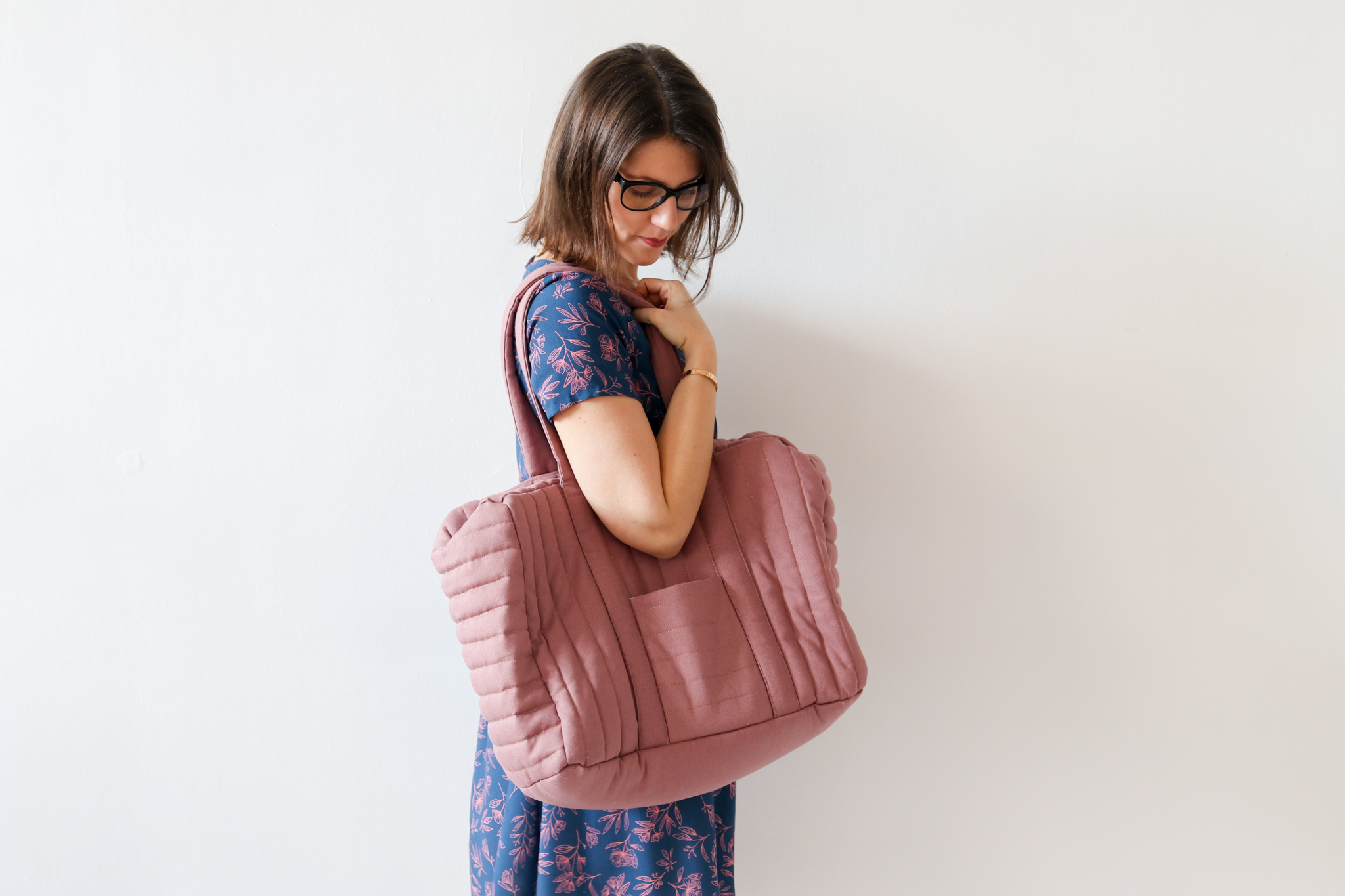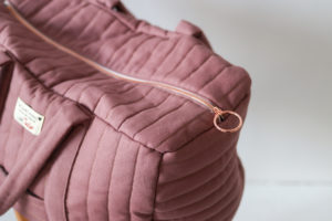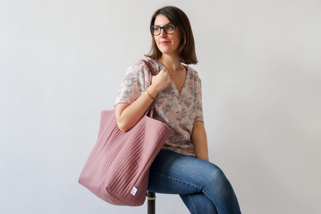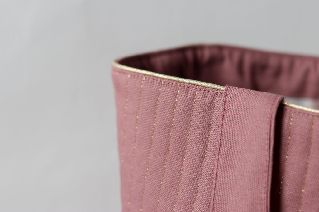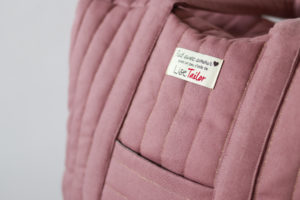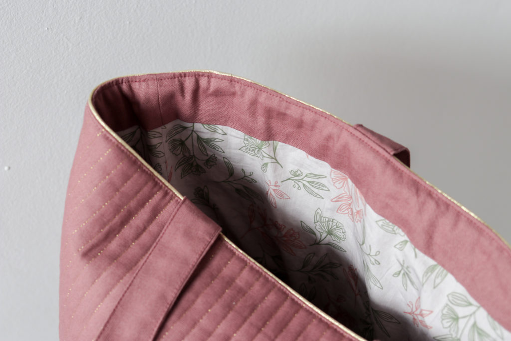J’ai veillé à vous garantir de très jolies finitions : sac matelassé avec un fil doré, petite poche sur l’endroit et des coutures gansées sur l’envers.