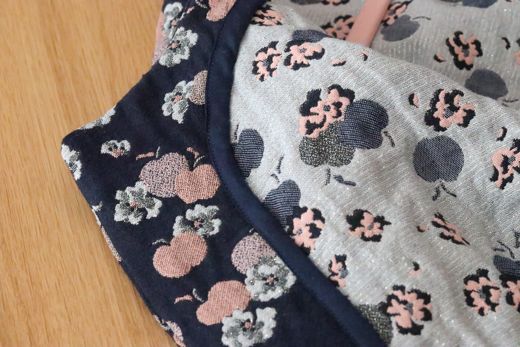 - Finitions à la main : même si beaucoup d’entre vous ne les aiment pas, grâce à son tissage le jacquard se prête très bien aux finitions à la main. Vous pouvez réaliser un point glissé pour rabattre les ceintures de shorts/jupe ou encore vos cols et pieds de col. Rien de plus satisfaisant que d’avoir un vêtement avec des finitions intérieures parfaites !