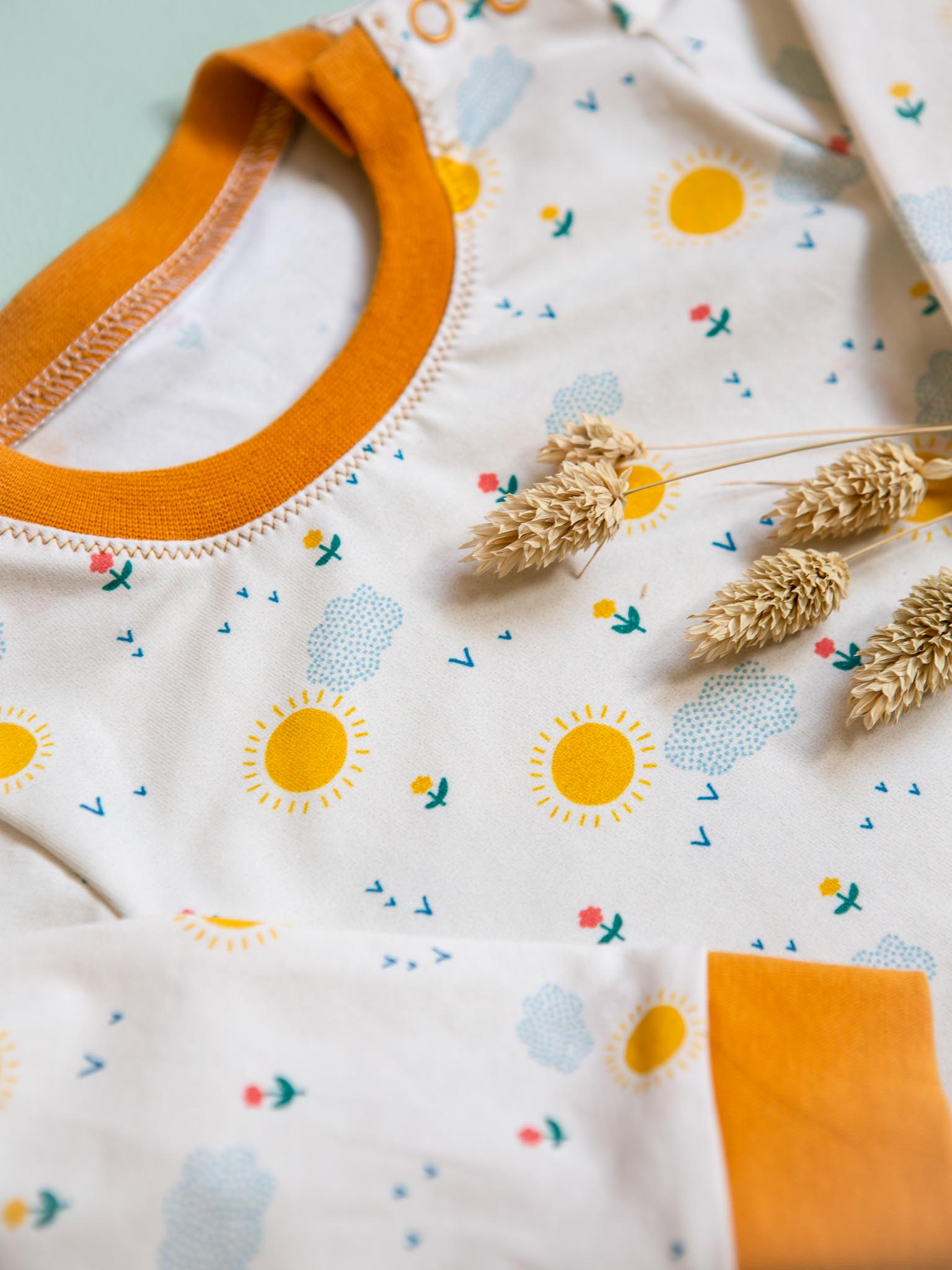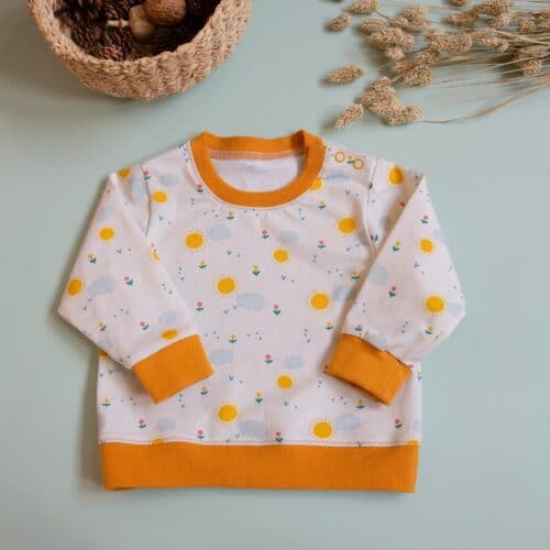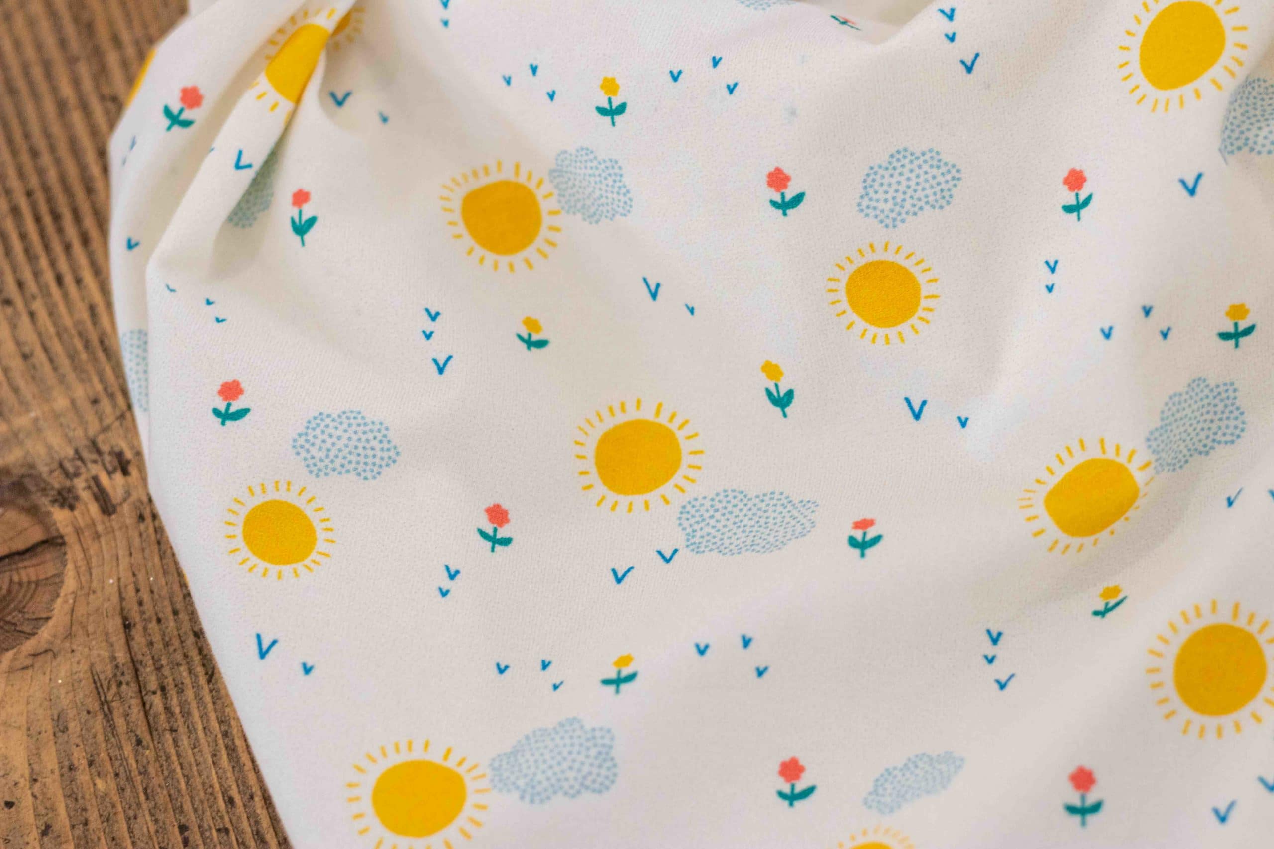 Pour cette collection retrouvez aussi notre jersey. Toujours imprimé sur base bio et à la qualité irréprochable nous le déclinons cet été avec le motif Sunshine. Joyeux, lumineux et surtout unisexe, il sera parfait pour des vêtements de bébé ou d’enfant. Son excellente rétractibilité assure tenue et confort.