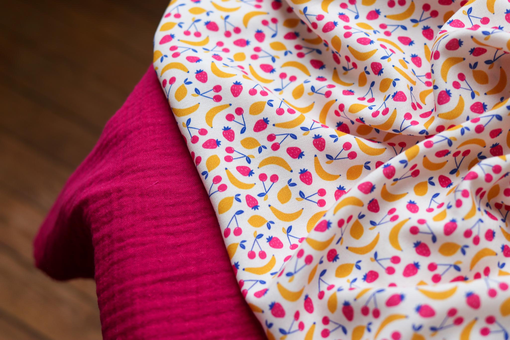 Grenadine est un motif figuratif et acidulé, une composition de fruits d’été sur fond blanc qui met en valeur les jaune et rose vifs. Parfaite pour des vêtements d’enfants, cette viscose non transparente apportera aussi une touche de fantaisie et de fraicheur aux pièces pour adultes. On l’imagine en robe longue avec un grand chapeau de paille ou en chemisette avec un jean et des accessoires assortis. C’est le motif parfait pour laisser parler sa bonne humeur !