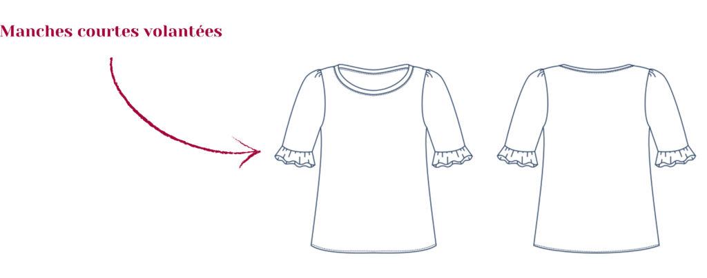 Nous souhaitions proposer un patron de t-shirt féminin avec de nombreux petits détails sans oublier les contraintes de cette matière extensible.