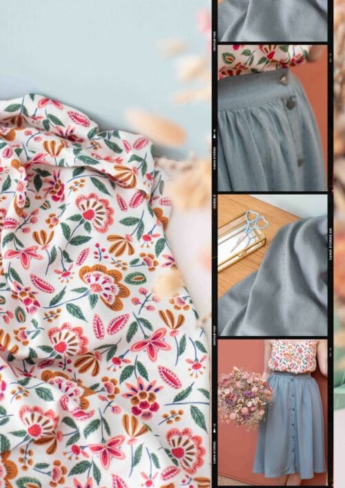 Suzette est le premier patron de cette jeune mercière qui a ouvert sa boutique à Angoulême. Une blouse un brin rétro à l’allure romantique et bohème qui va parfaitement avec notre viscose Olga. On adore les petits volants à l’encolure et ce décolleté coeur.
