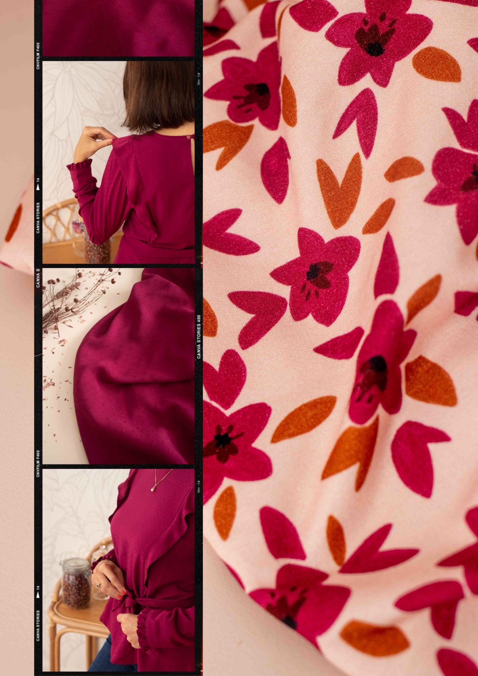 Vous étiez nombreuses à nous demander de composer vos propres kits d’accessoires. Nous avons donc répondu à votre souhait avec le lancement de la toile au mètre, de notre molleton industriel, les doublures coton assorties, nos jolies fermetures éclair en or rose et la vente de nos patrons d’accessoires en version pdf. Après plusieurs mois de réflexion, nous avons pris le parti d’arrêter les kits de couture prêt à coudre, qui, nous l’avouons, devenaient compliqués à gérer et que nous ne pouvions pas proposer à la revente du fait du coût de production. Nous avions également à coeur de mettre en avant nos jolis motifs pour créer les accessoires dont vous aviez envie et laisser parler votre créativité. Notre canva pouvant être utilisé également pour l’habillement, cela nous a convaincues d’aller dans ce sens et ne pas limiter cette matière aux accessoires. Lors des tests, la matière nous a tout de suite donné des envies de jupes, vestes, pantalons… Certains nous demandent déjà si le canva sera une matière suivie, si à chaque collection il y aura une toile canva ou plusieurs… pour tout vous dire, pas de cachoterie, rien n’est encore arrêté ! Si l’engouement des premiers jours perdure la toile canva pourrait bien être un produit récurrent avec de nouveaux motifs.
