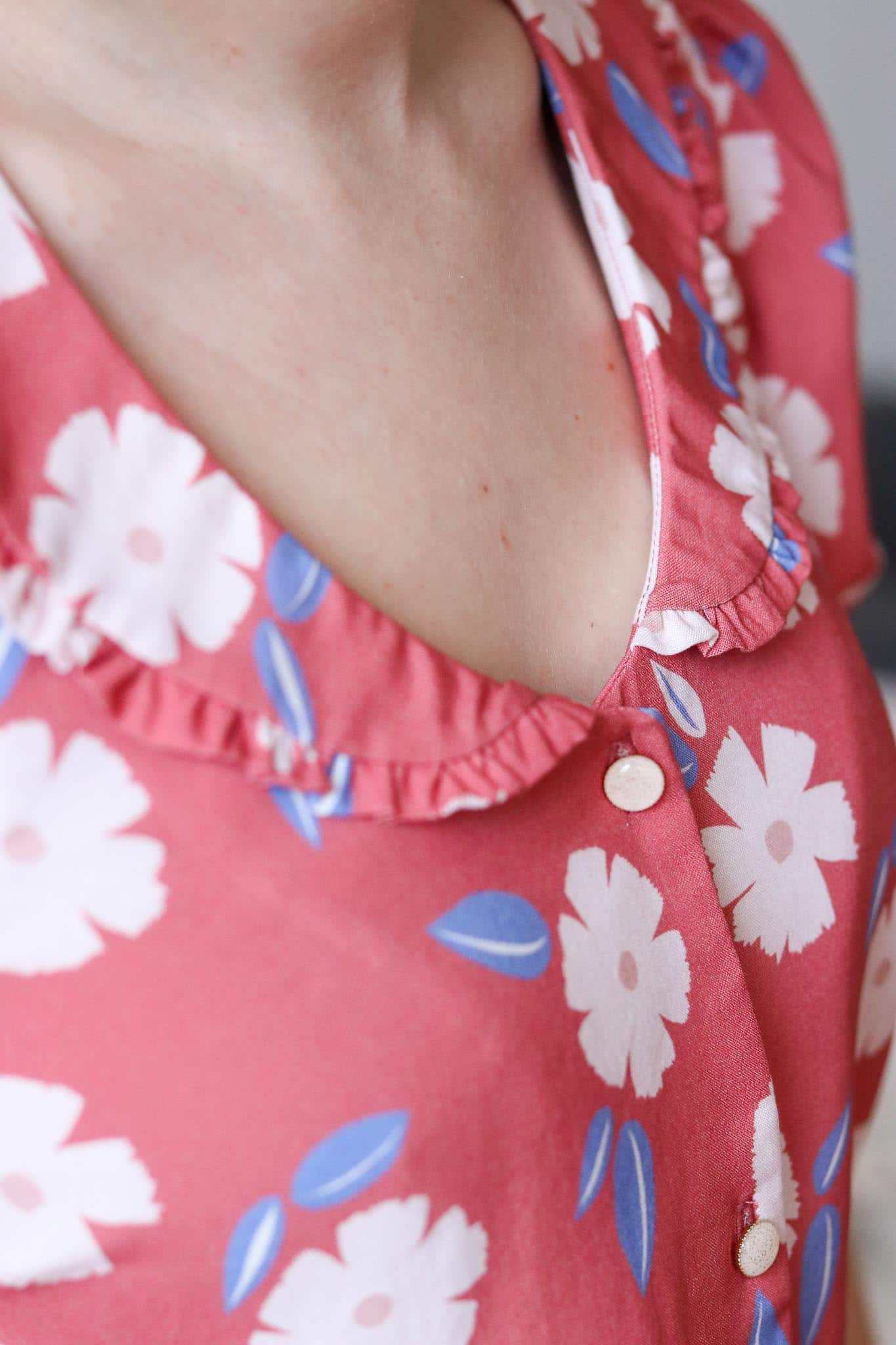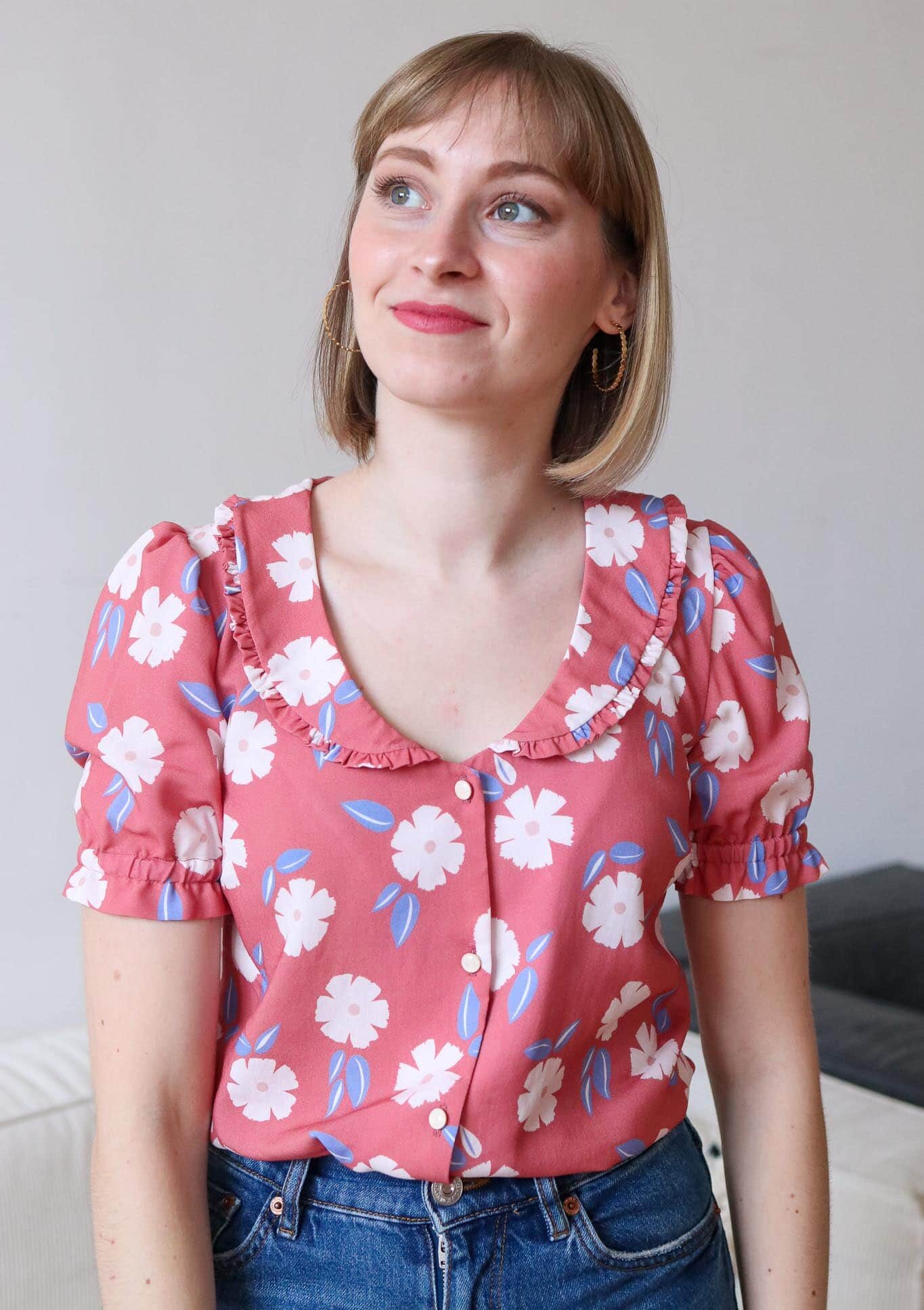 Notre tissu Rosée printanière a aiguisé notre créativité et nous à inspiré ce nouveau hack du patron Comète que nous adorons porter au quotidien.