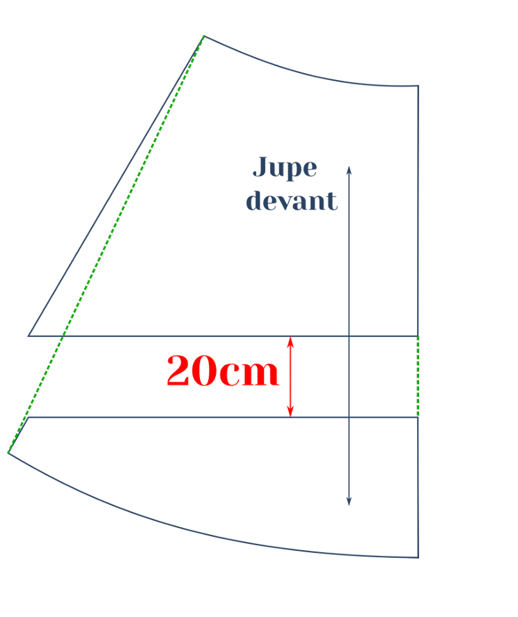 - Sur la pièce jupe devant, coupez le patron sur la ligne « raccourcir / allonger ».