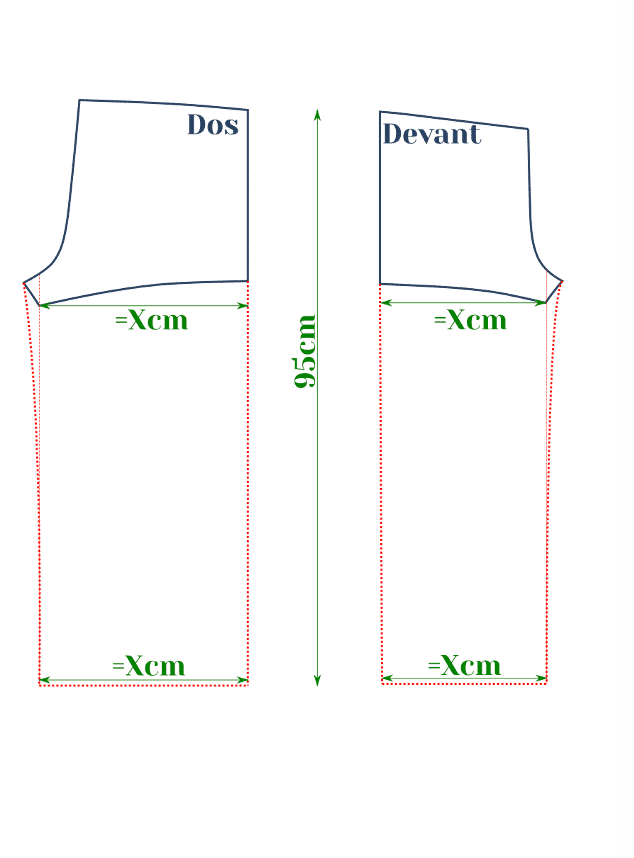 a) Allongez la couture côté jusqu’à ce qu’elle mesure 95cm au total (cette mesure est donnée à titre indicatif pour une longueur 7/8eme sur une stature de 1m60)