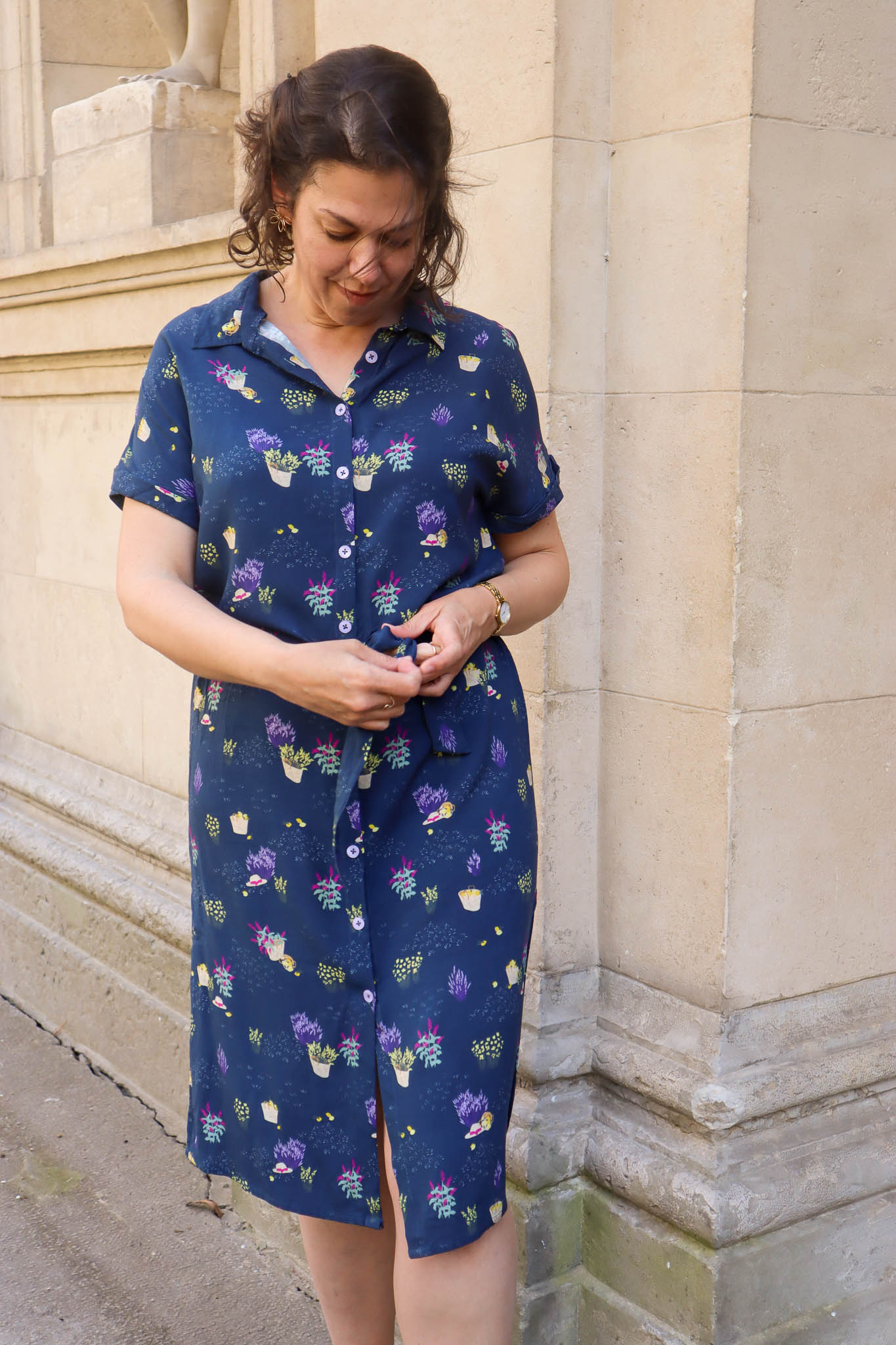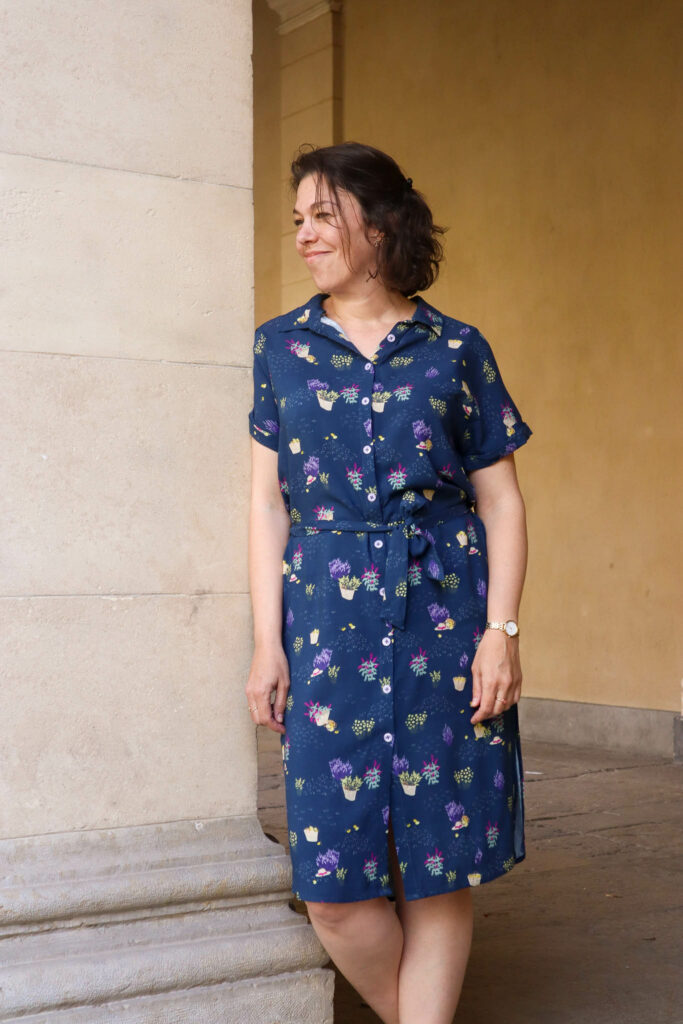 Sur cette version de la chemise du livre Escapade au Soleil, nous allons simplement allonger les patronages du devant et du dos afin d’obtenir un patron de robe. Nous allons également créer des fentes sur les côtés et réaliser une ceinture et des passants.