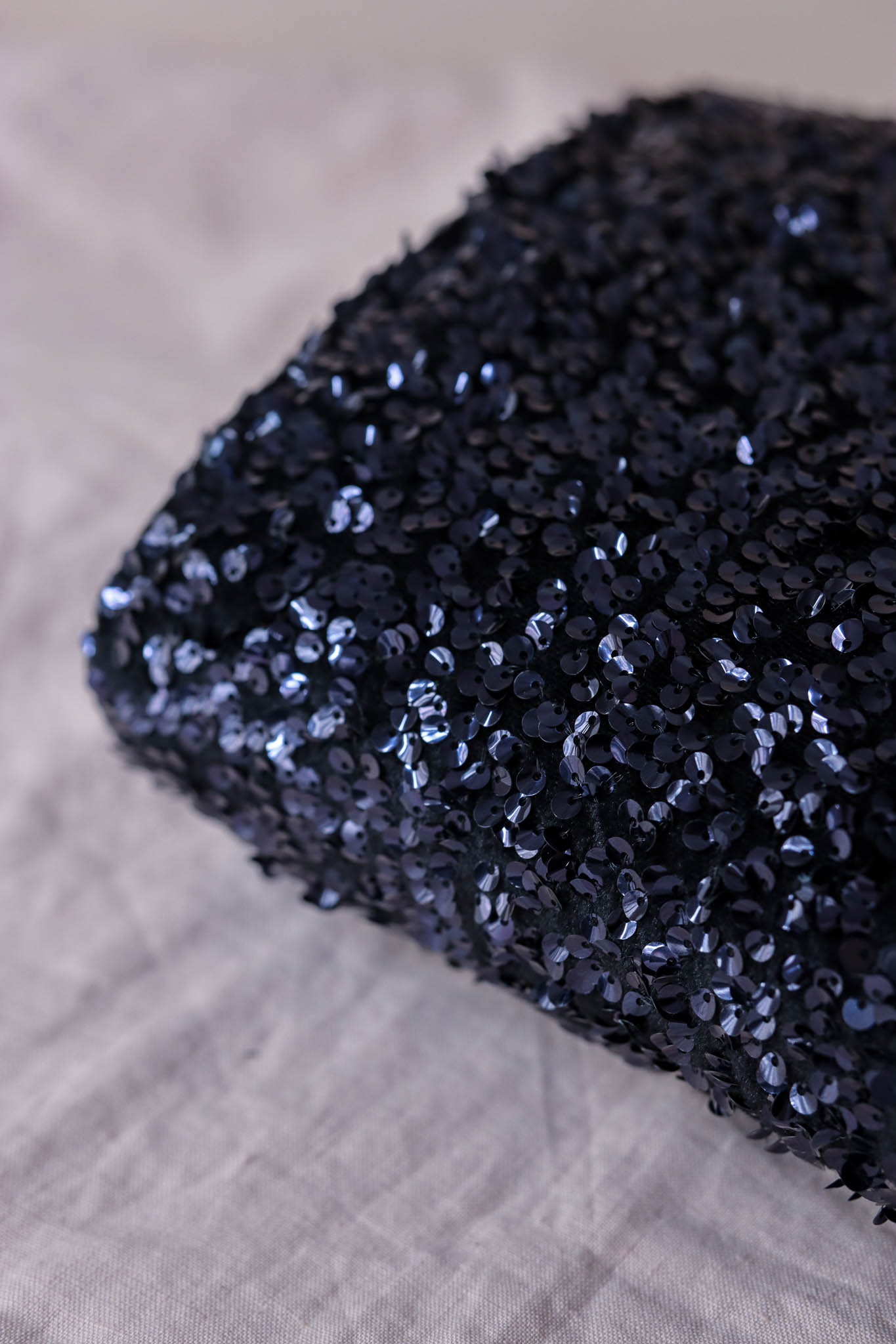 Le tissu sequin qu’on vous propose dans la capsule Dancing Queen est bleu nuit, sur une base de velours ras. C’est le tissu idéal pour vos projets couture de fin d’année !