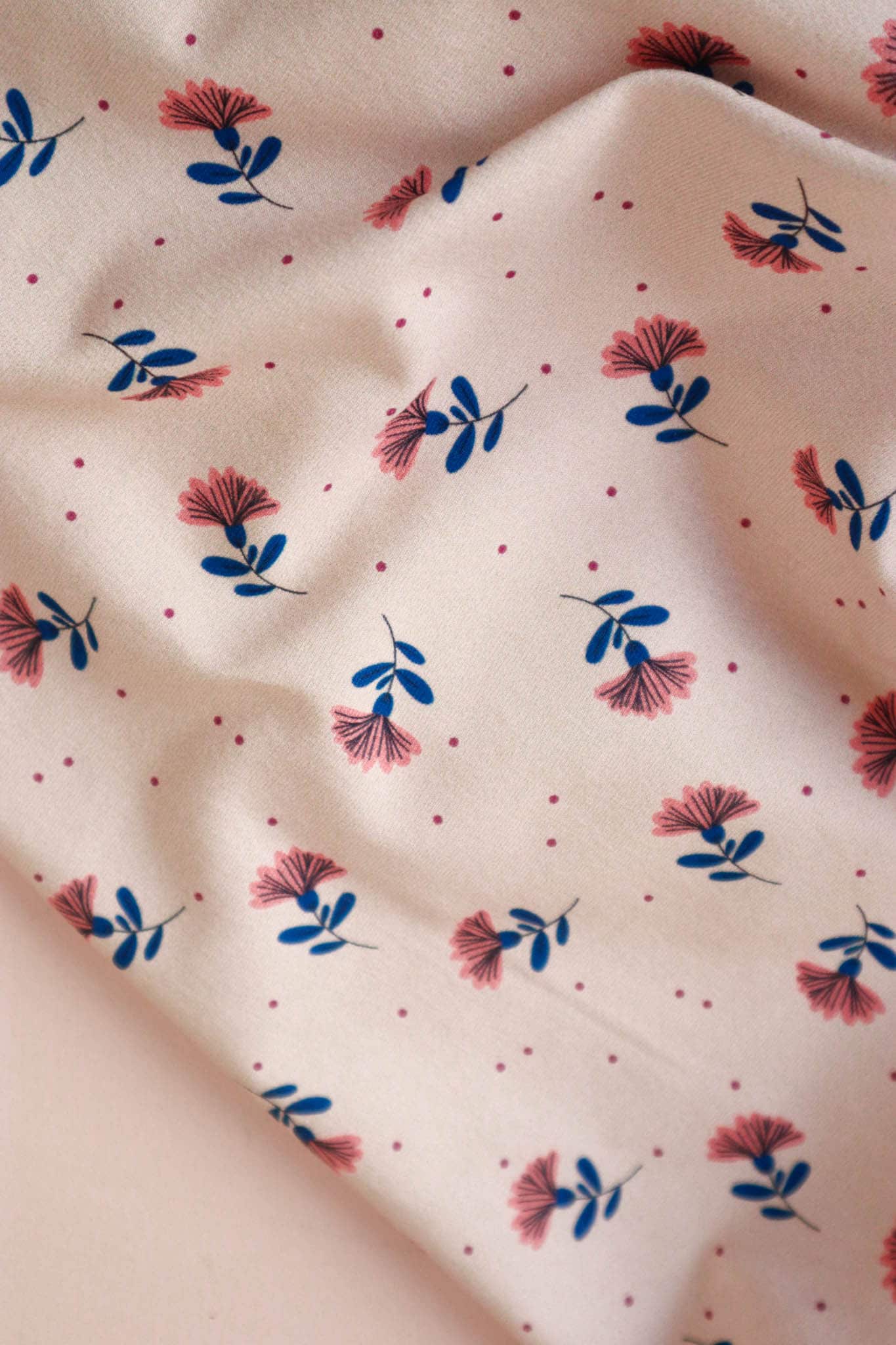 Bérénice est le petit motif floral de la collection l’Air du temps. Symbole de beauté et d’émotion, l’oeillet se pare d’un rose doux et se pose délicatement sur ce fond écru. Quelques touches de bleu roi viennent rythmer cette composition.