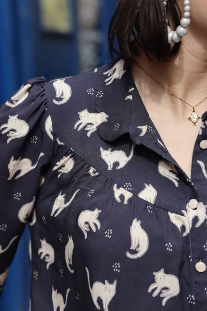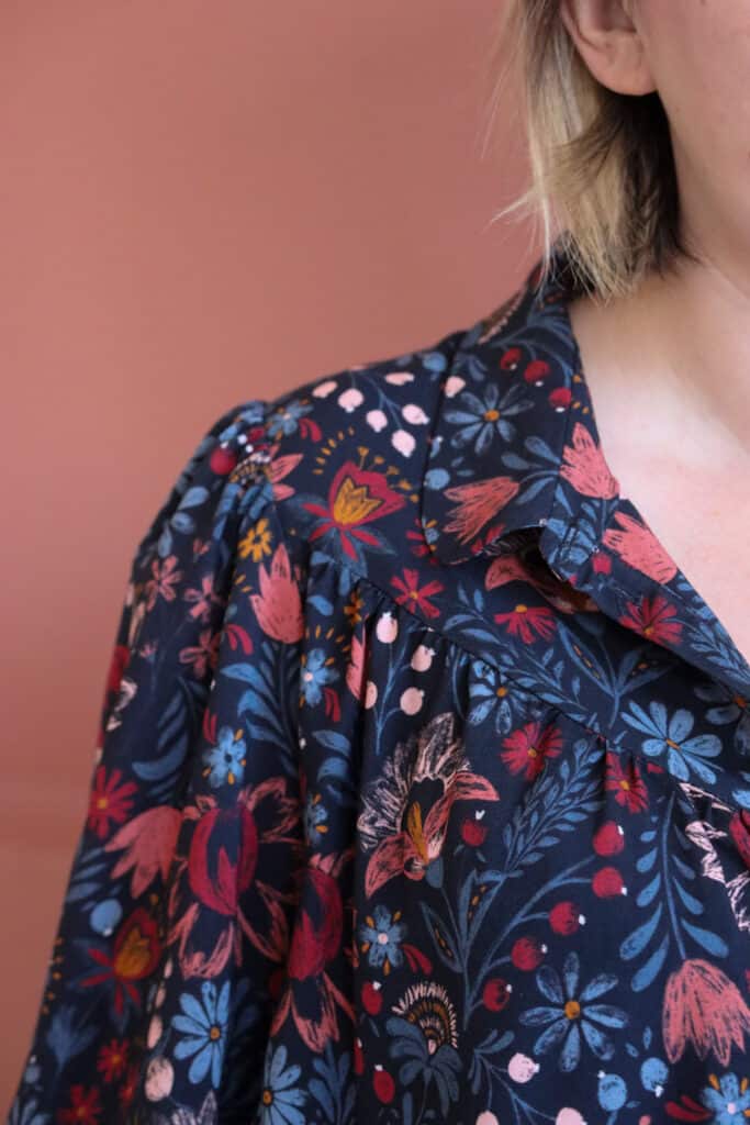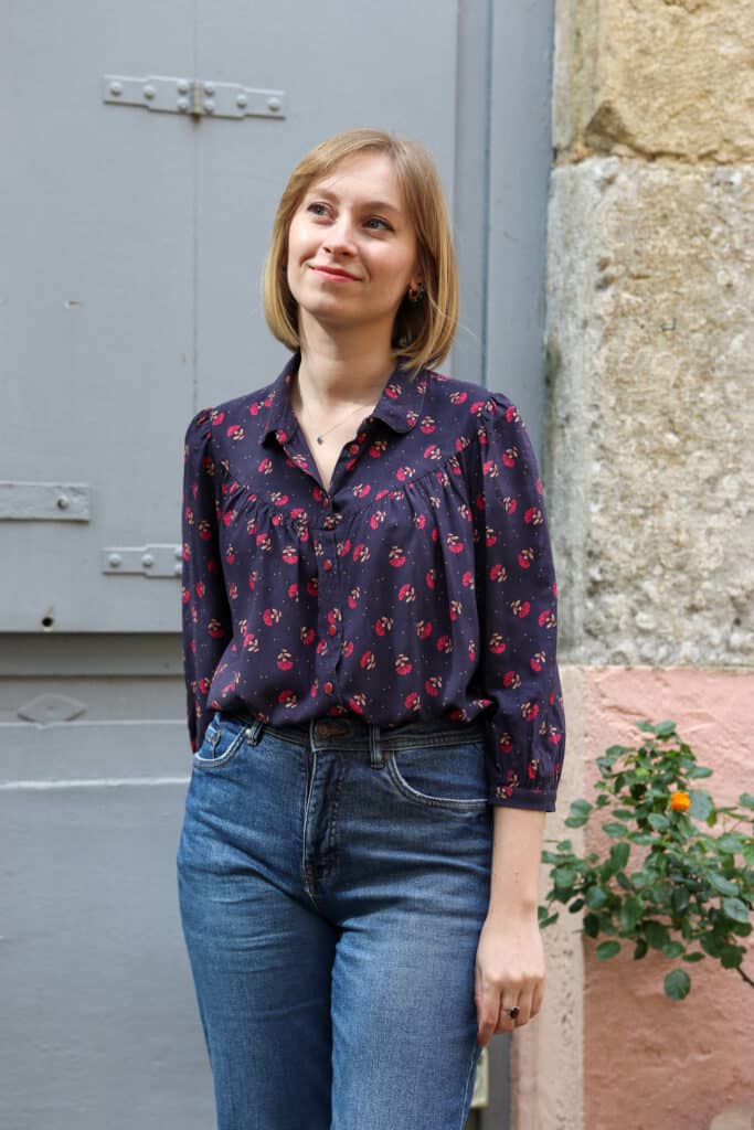 Les fronces sont réparties de manière harmonieuse pour équilibrer la silhouette afin de porter la chemise sur un jean ou à l’intérieur d’une jupe.