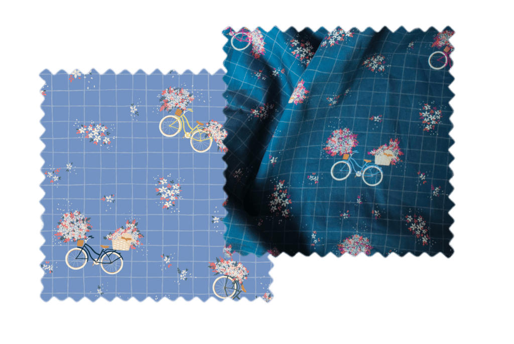 Le tissu : Bicyclette bleu est un satin de coton souple est frais, parfait pour les projets qui demandent un peu de structure