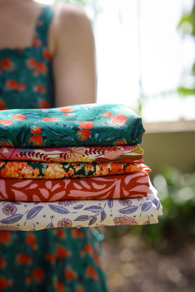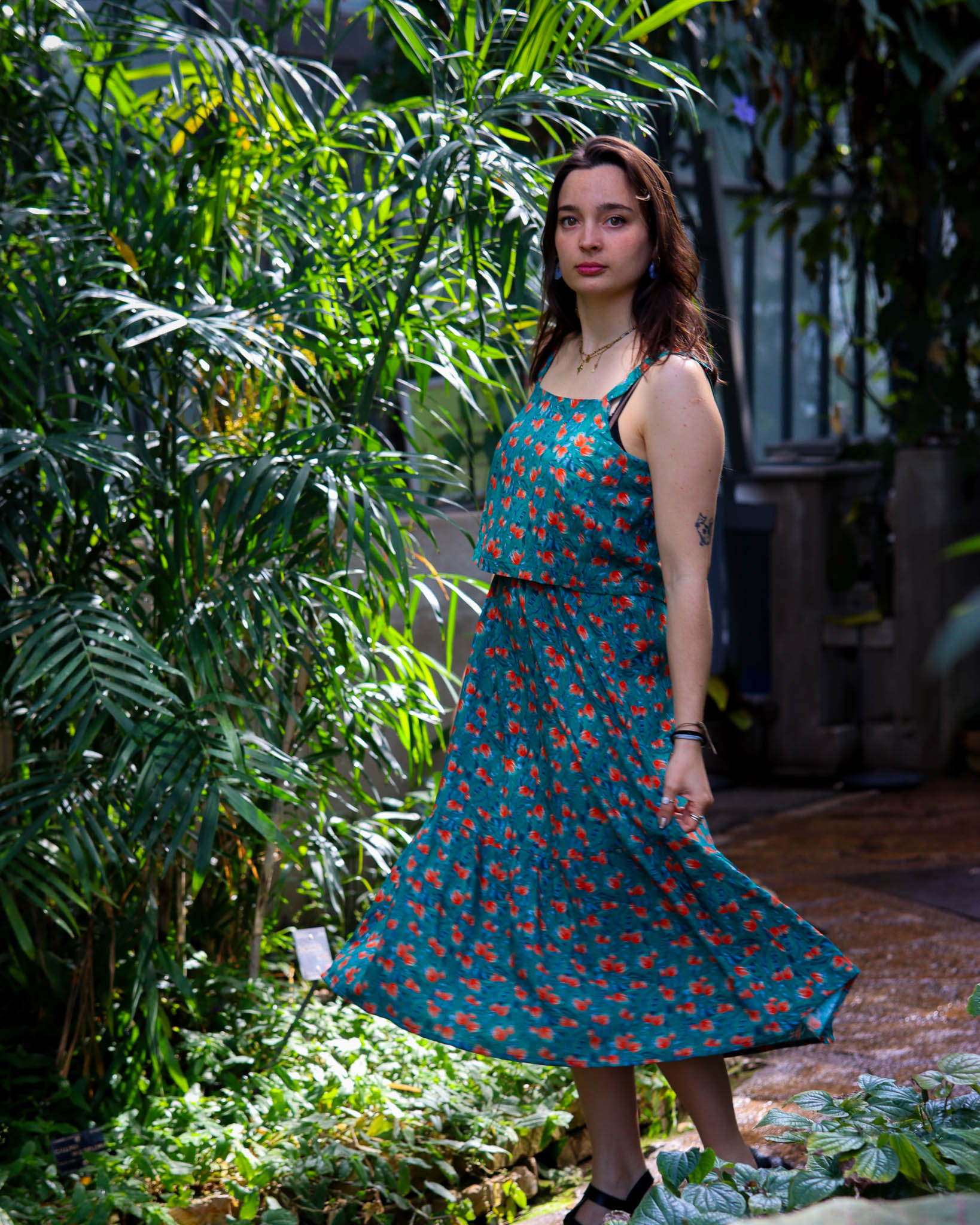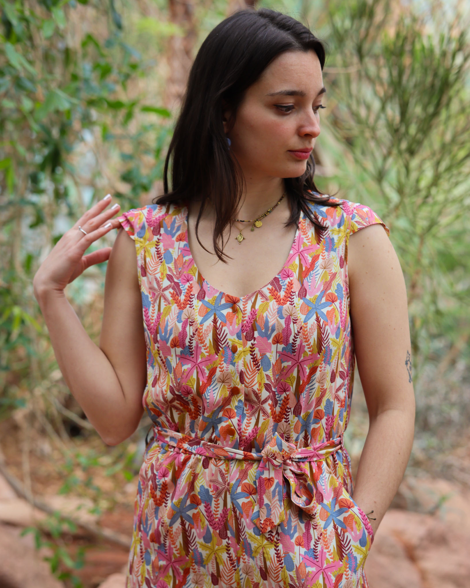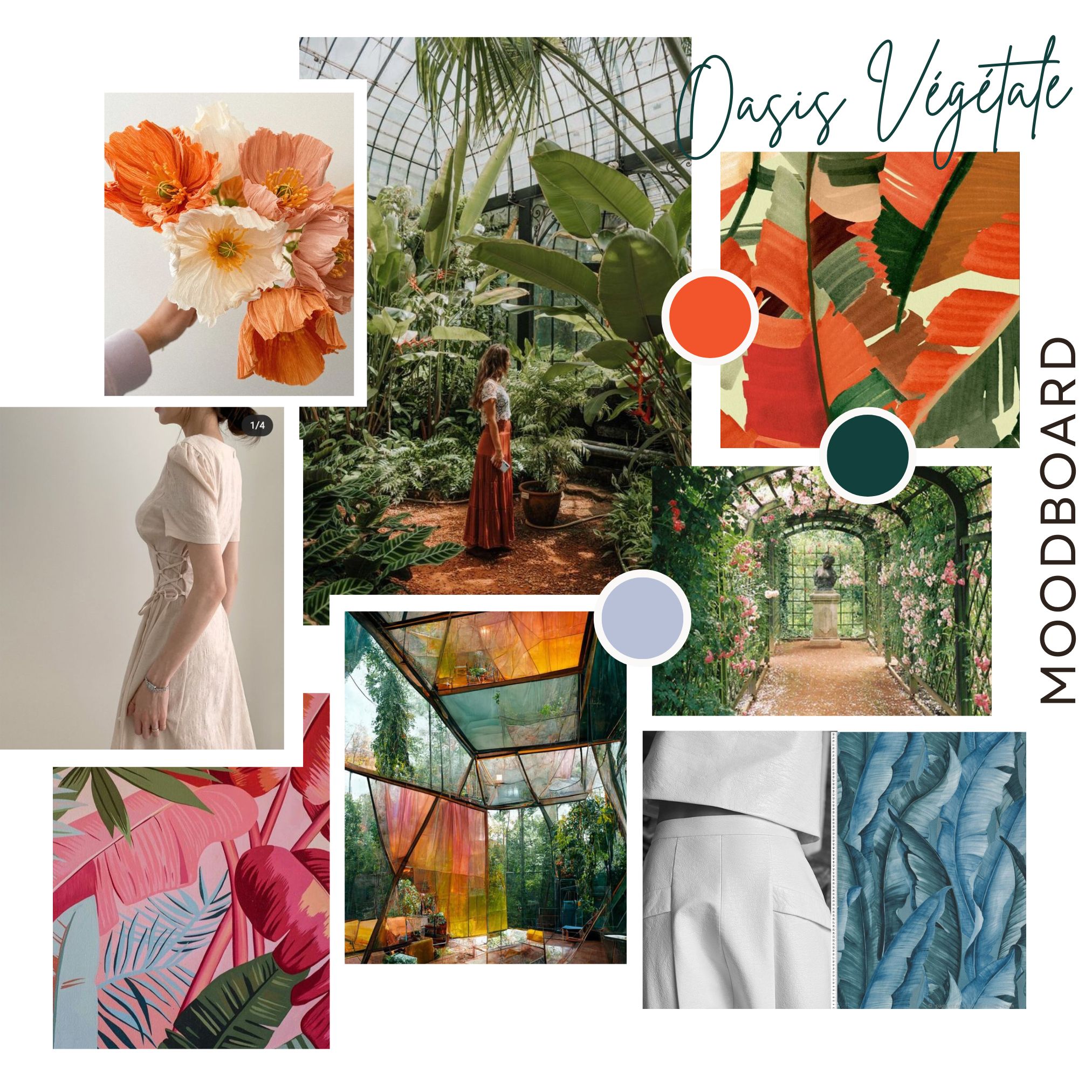 « Au milieu des plantes d’ici et d’ailleurs, des silhouettes colorées prônent la nature. On se retrouve au centre d’un tourbillon parfois bucolique, parfois exotique. »