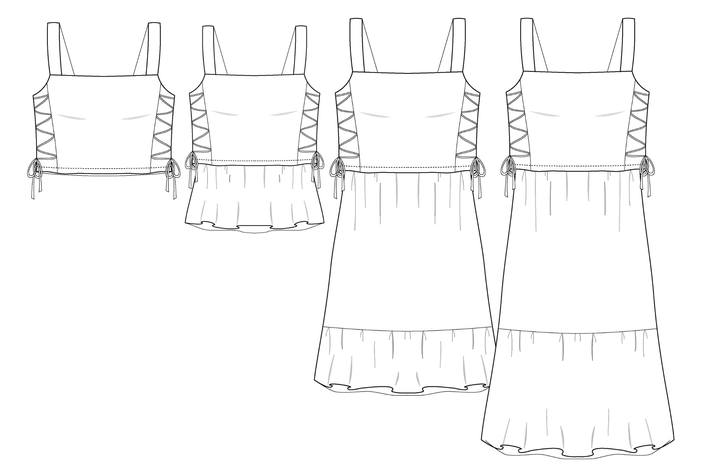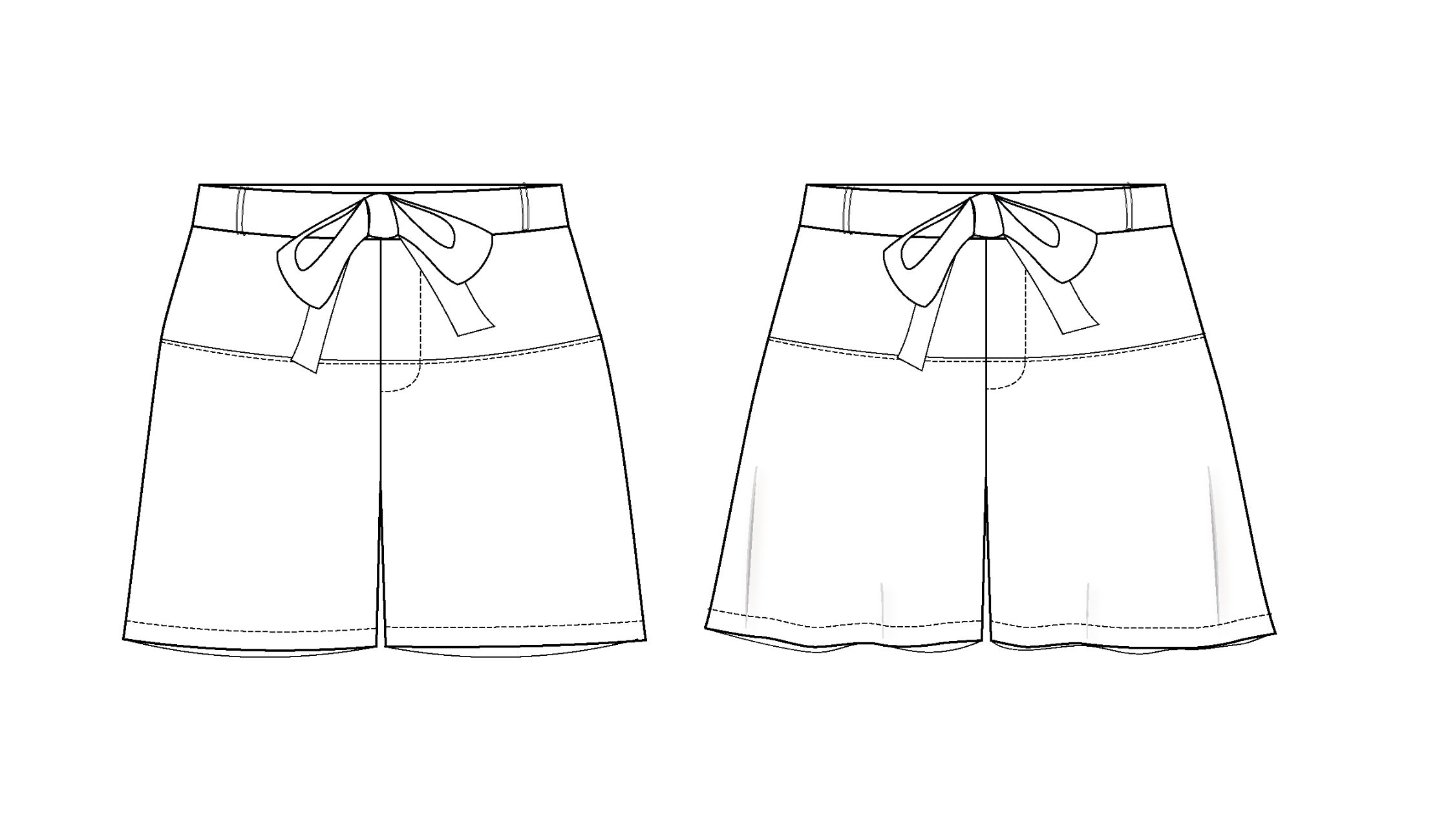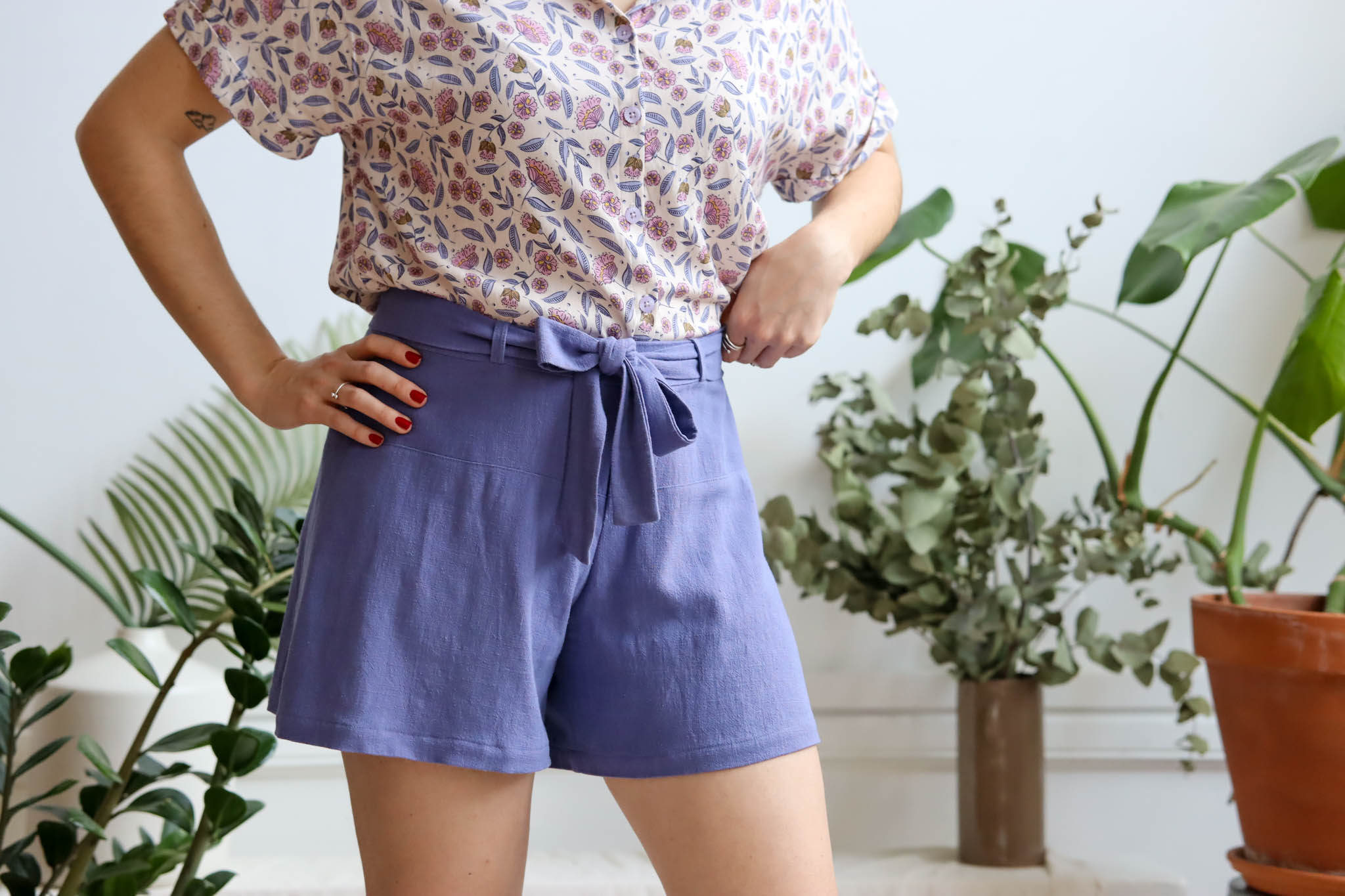 Frivole est un short qui s’adapte à vos envies. Optez pour l’option n°1 si vous souhaitez une version légère et volantée pour l’été. Si vous souhaitez une coupe plus droite adaptée aux tissus avec de la tenue, optez pour l’option n°2.