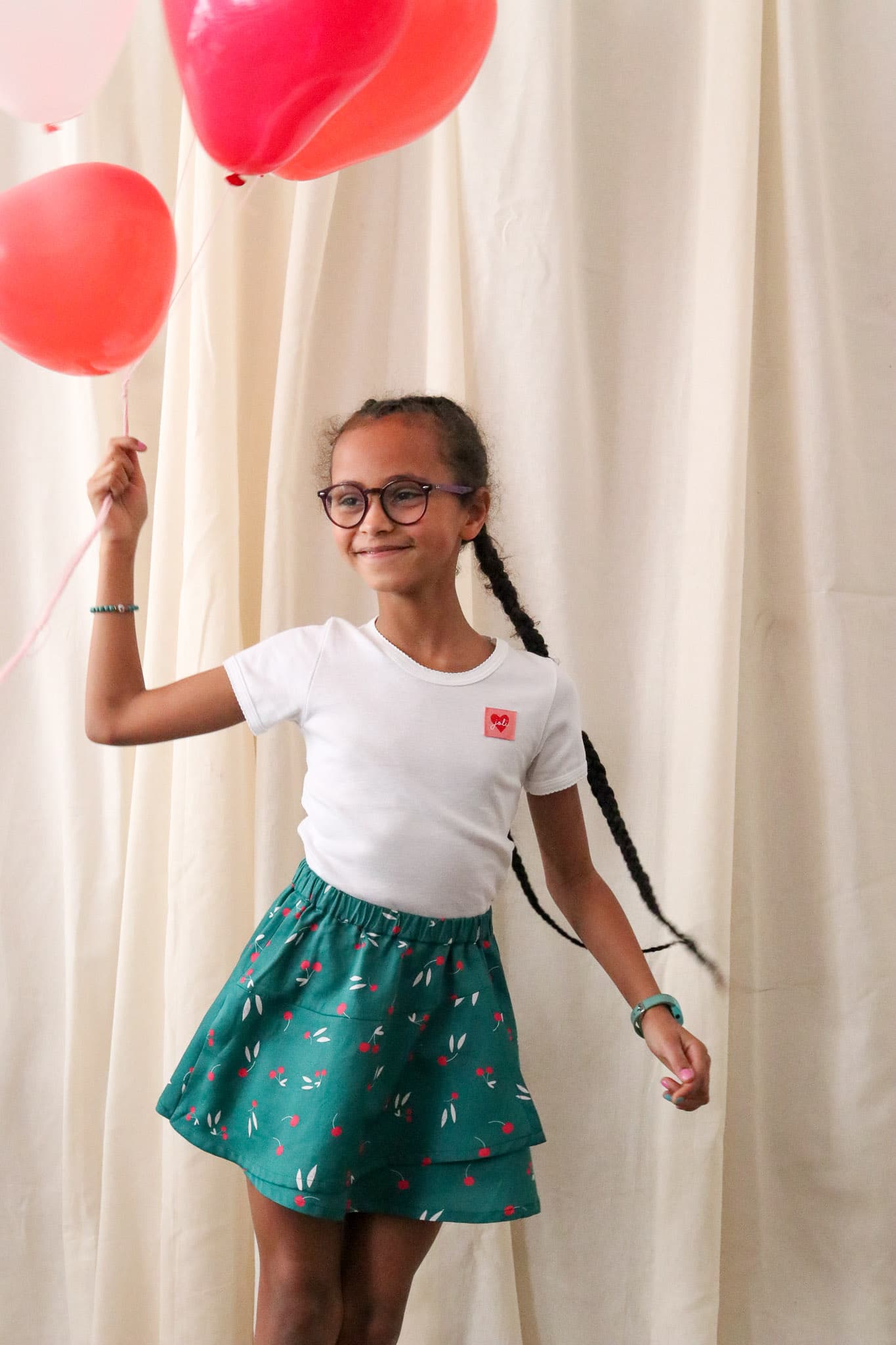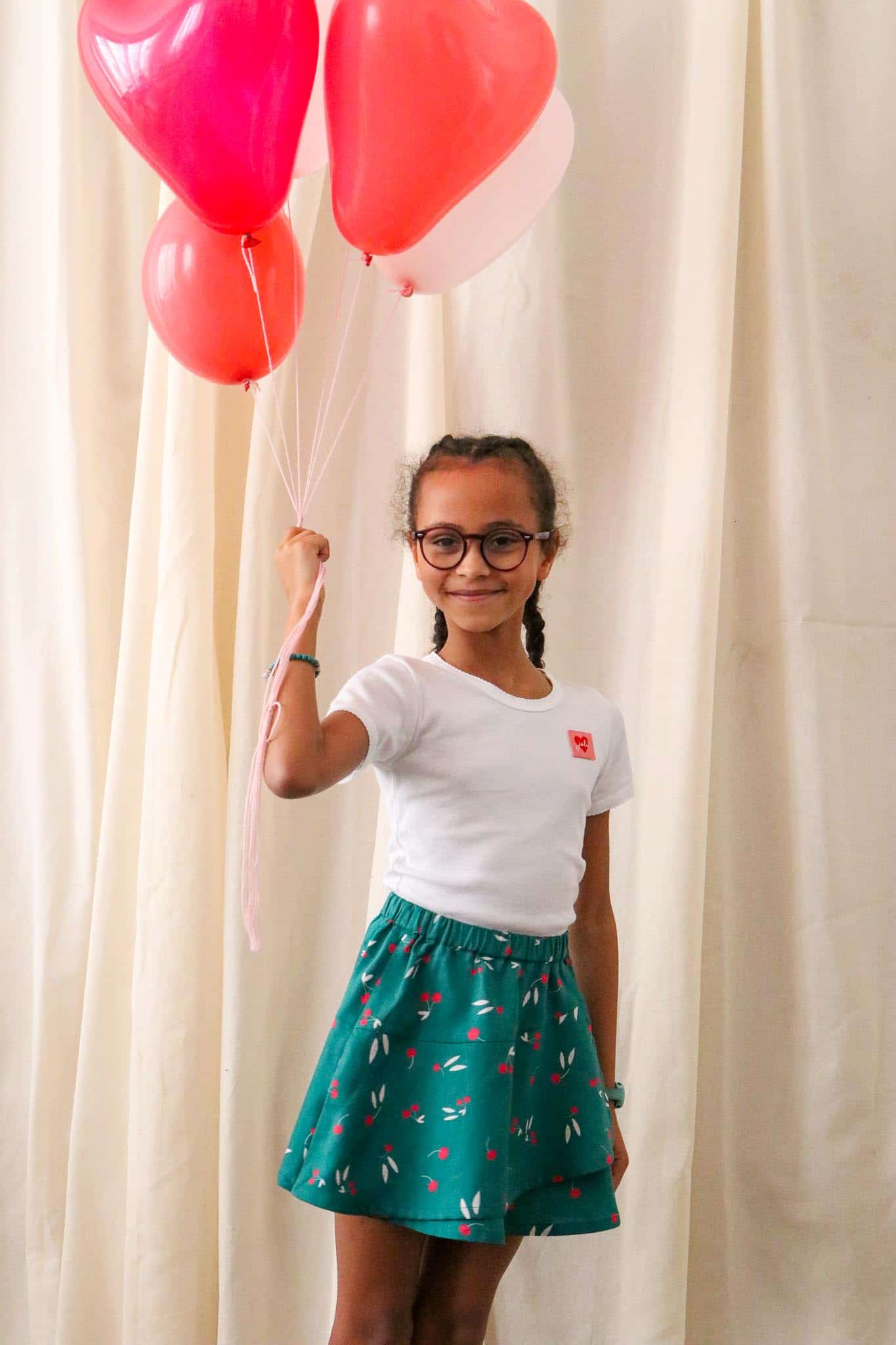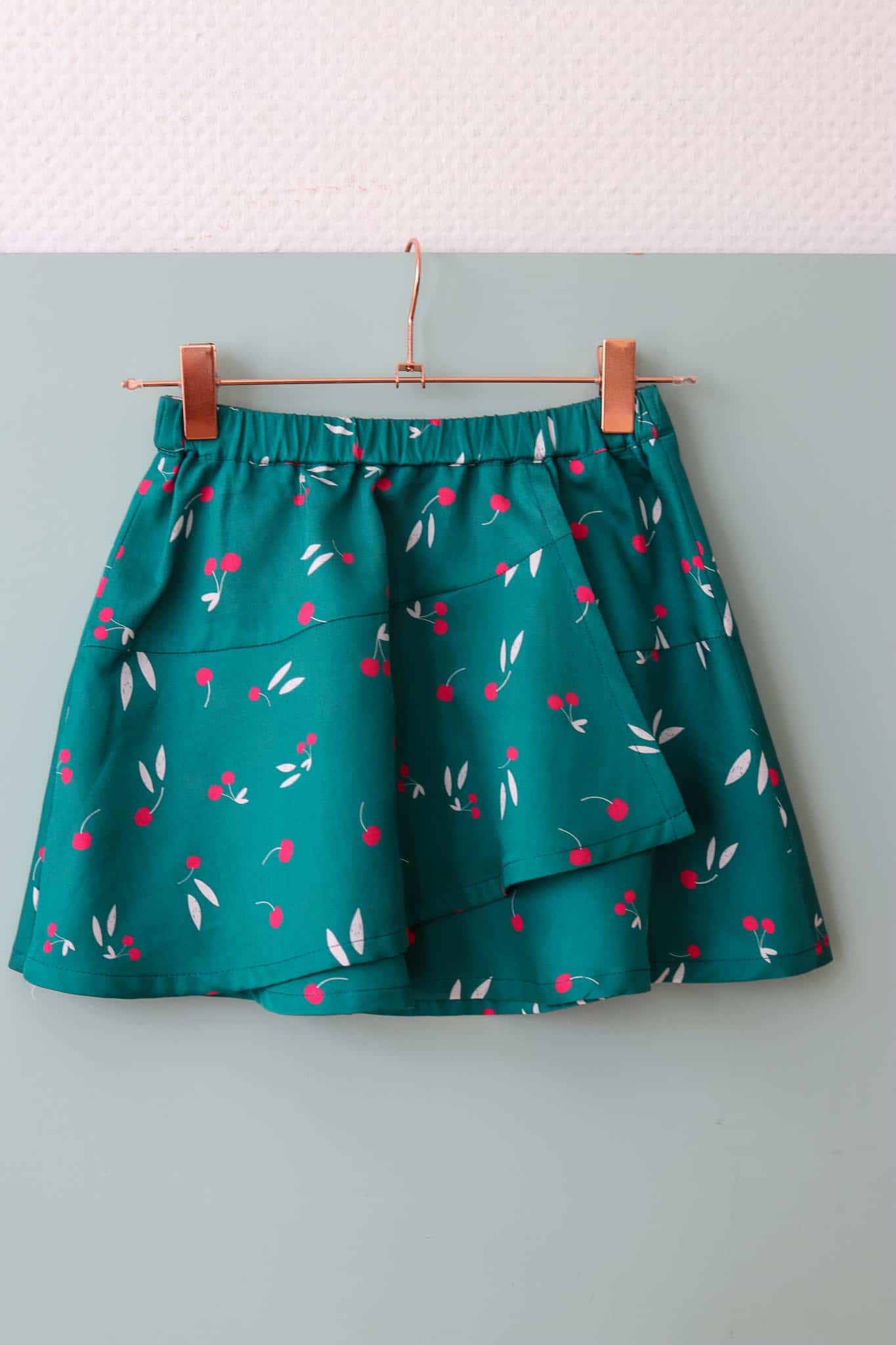 Nous nous sommes inspirées d’une jupe portefeuille légèrement revisitée pour suivre l’enfant dans tous ses mouvements.