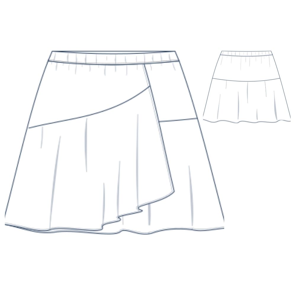 Pour réaliser cette jupe, nous vous conseillons d’utiliser un tissu fluide type viscose, crêpe, satin de coton. Le patronage est prévu pour un tissu en chaîne et trame.