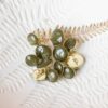 Bouton de bottine colorés et ornés de paillettes dorées. Vendu à l’unité.
