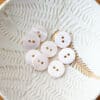 Bouton en nacre plat, à deux trous. Vendu à l’unité.