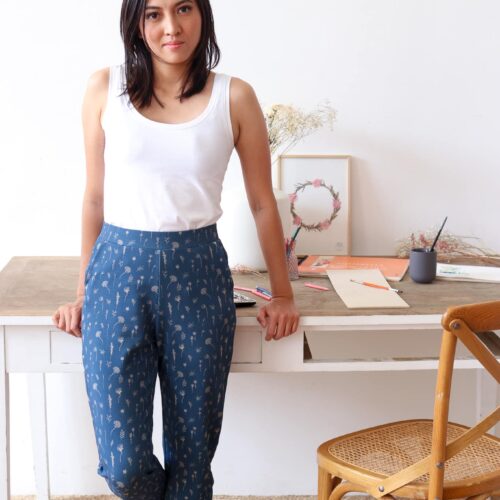 Hors de question toutefois de se rabattre sur du pilou pilou informe à la couleur improbable, on choisit un tissu à motifs qui permettra de se sentir jolie dans sa tenue tout confort.
