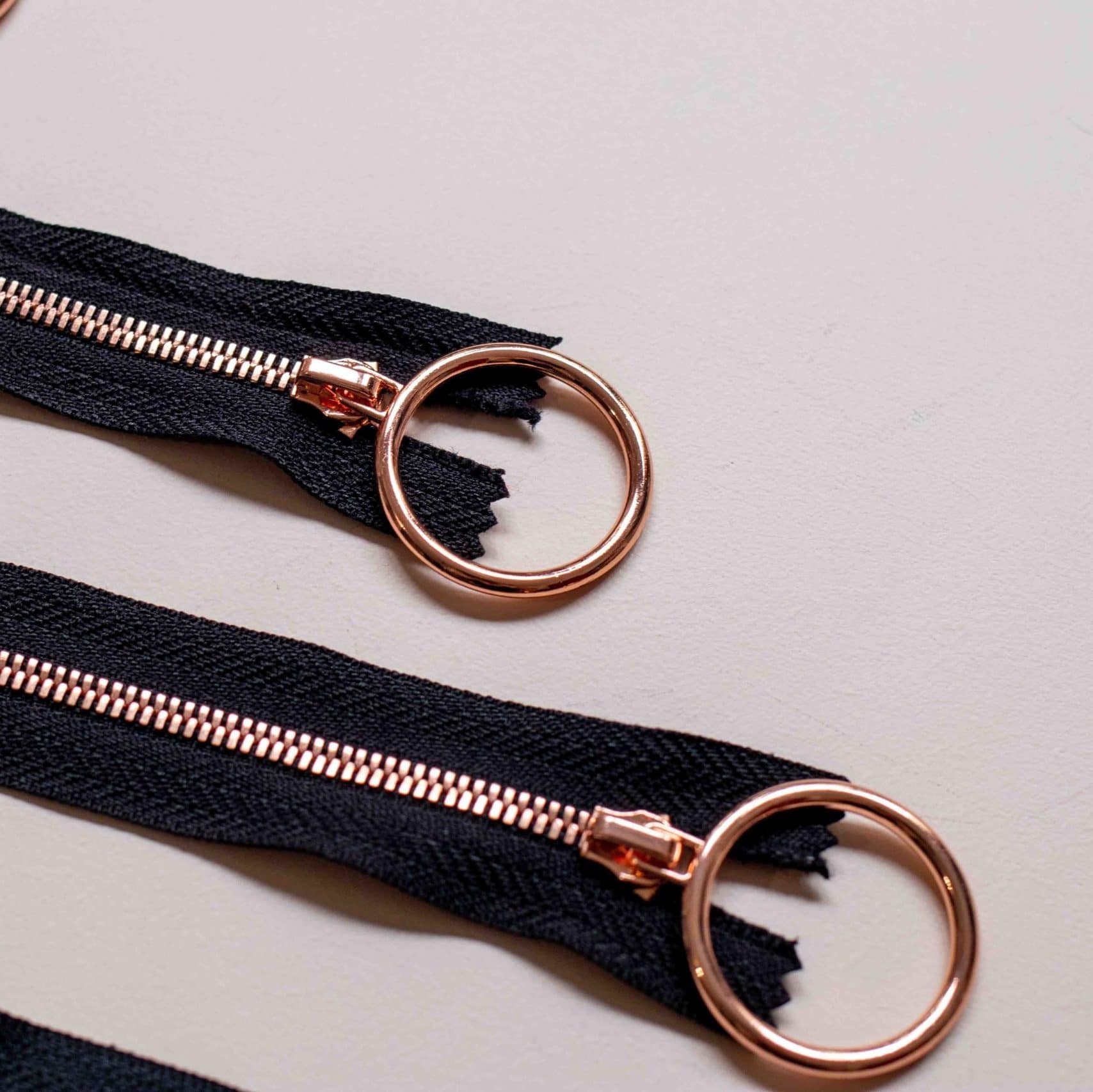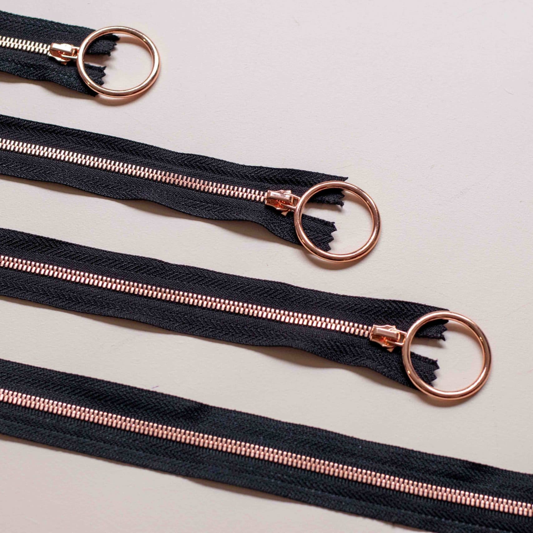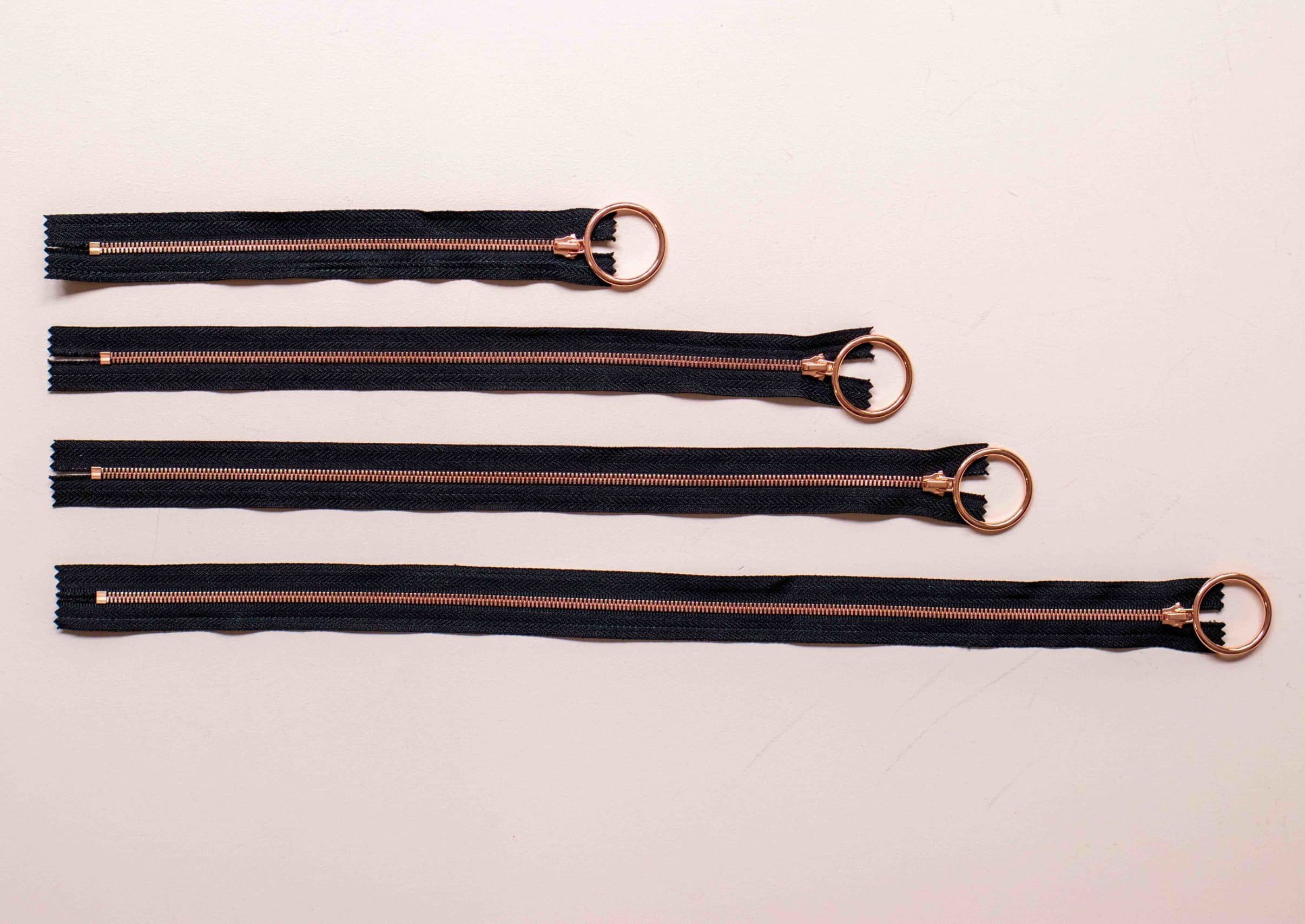 Voici de jolies fermetures à glissière or rose parfaites pour la confection de vêtements, d’objets de déco, de sacs, ou d’accessoires.