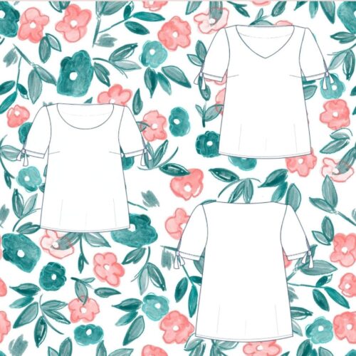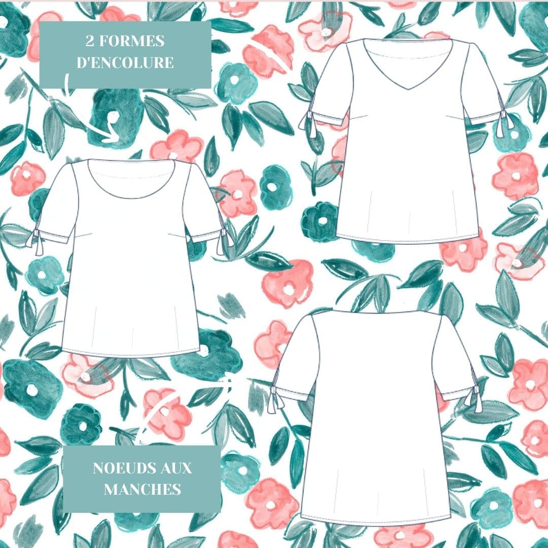 Easy peasy est un t-shirt en tissu chaine et trame. C’est un basique à avoir dans sa garde-robe qui s’accordera avec vos petites jupes, shorts ou pantalons fait main. Vous aurez le choix entre deux options d’encolures : une encolure ronde (finition au biais ou avec un enforme) et une encolure en V (finition avec un enforme).
