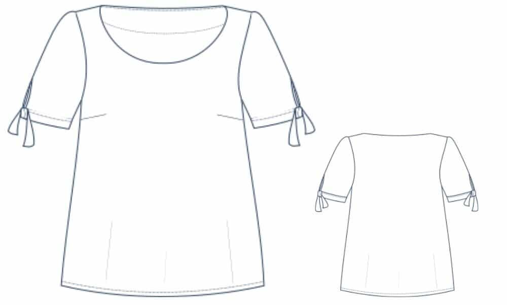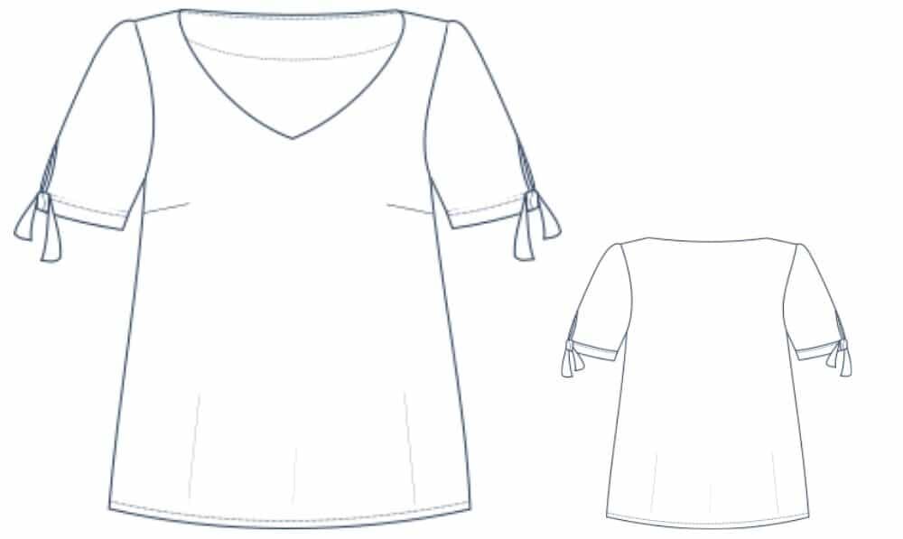 Pour réaliser ce top, nous vous conseillons d’utiliser un tissu fluide type viscose, crêpe, lin viscose… (Le patronage est prévu pour un tissu en chaîne et trame).