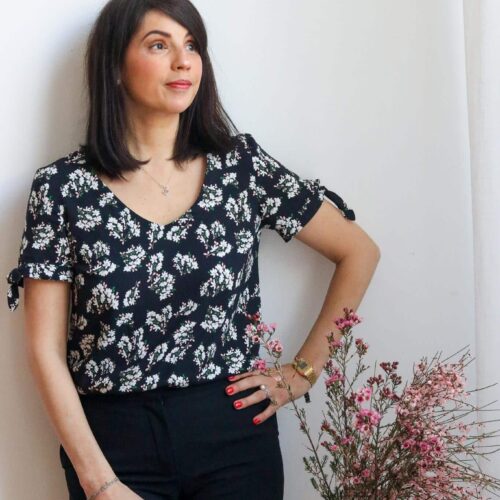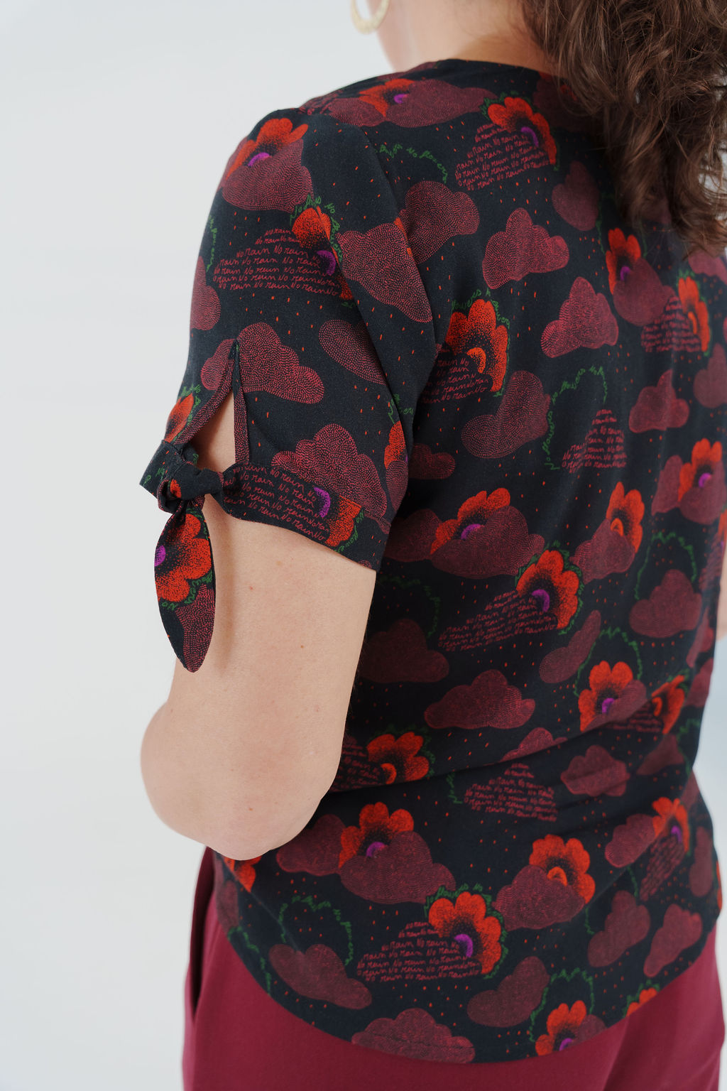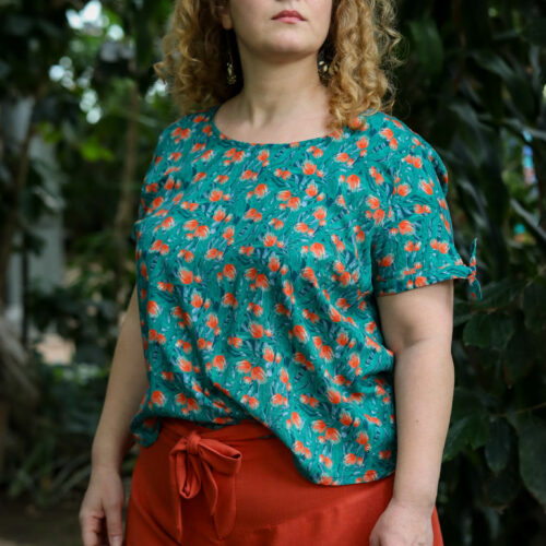 Osez le total look en portant le top easy peasy avec une jupe ou un pantalon dans le même motif façon « fausse » robe ou « fausse » combinaison. Notre top cousu dans un tissu imprimé se portera également à merveille avec un bas dans un tissu uni ou vice versa…