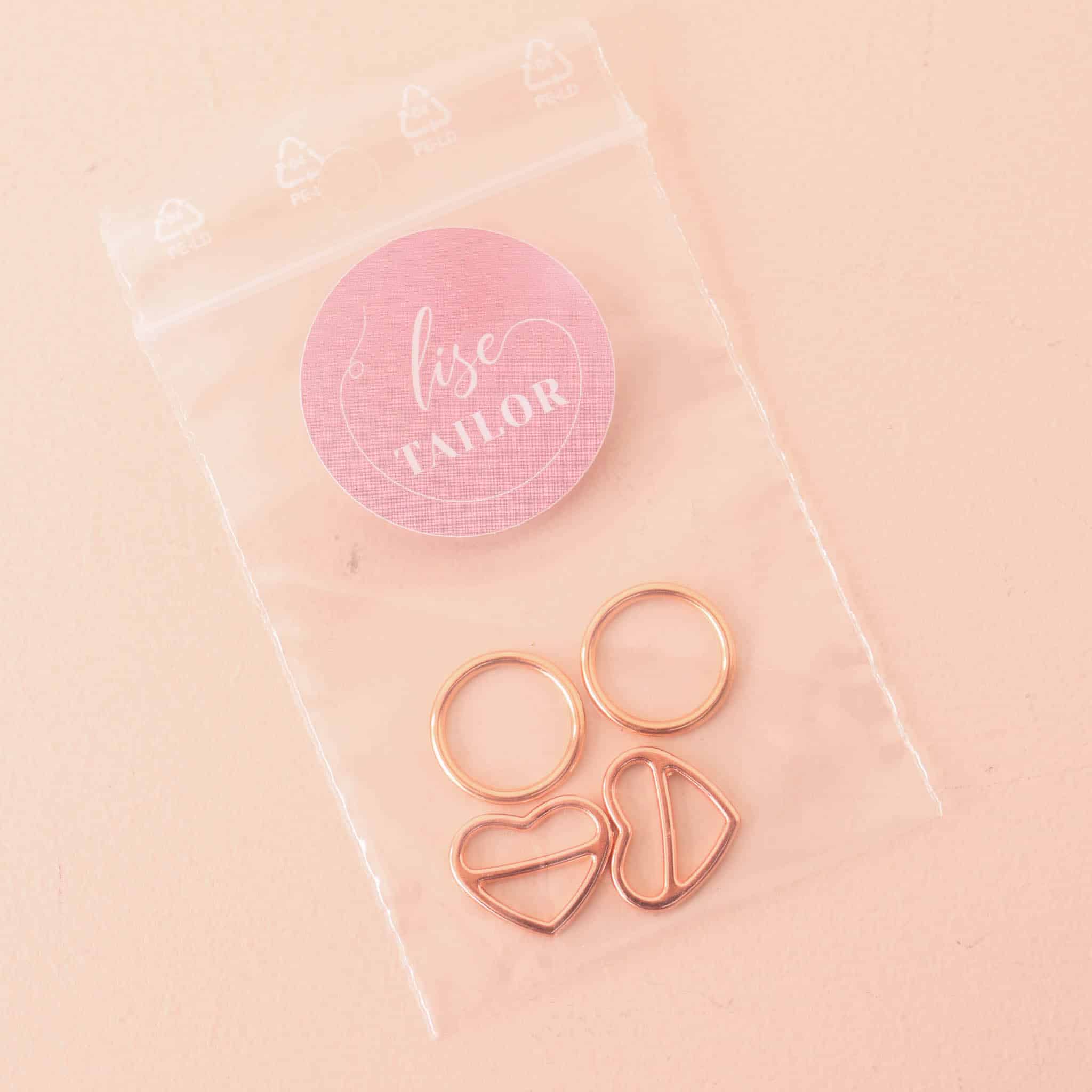 Lot de 2 régleurs coeur et 2 anneaux afin de créer d’adorables bretelles réglables.