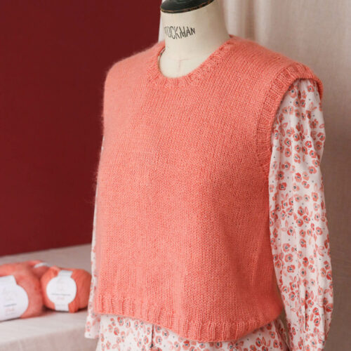 Le manequin porte le slipover Berthie de Lise Tailor