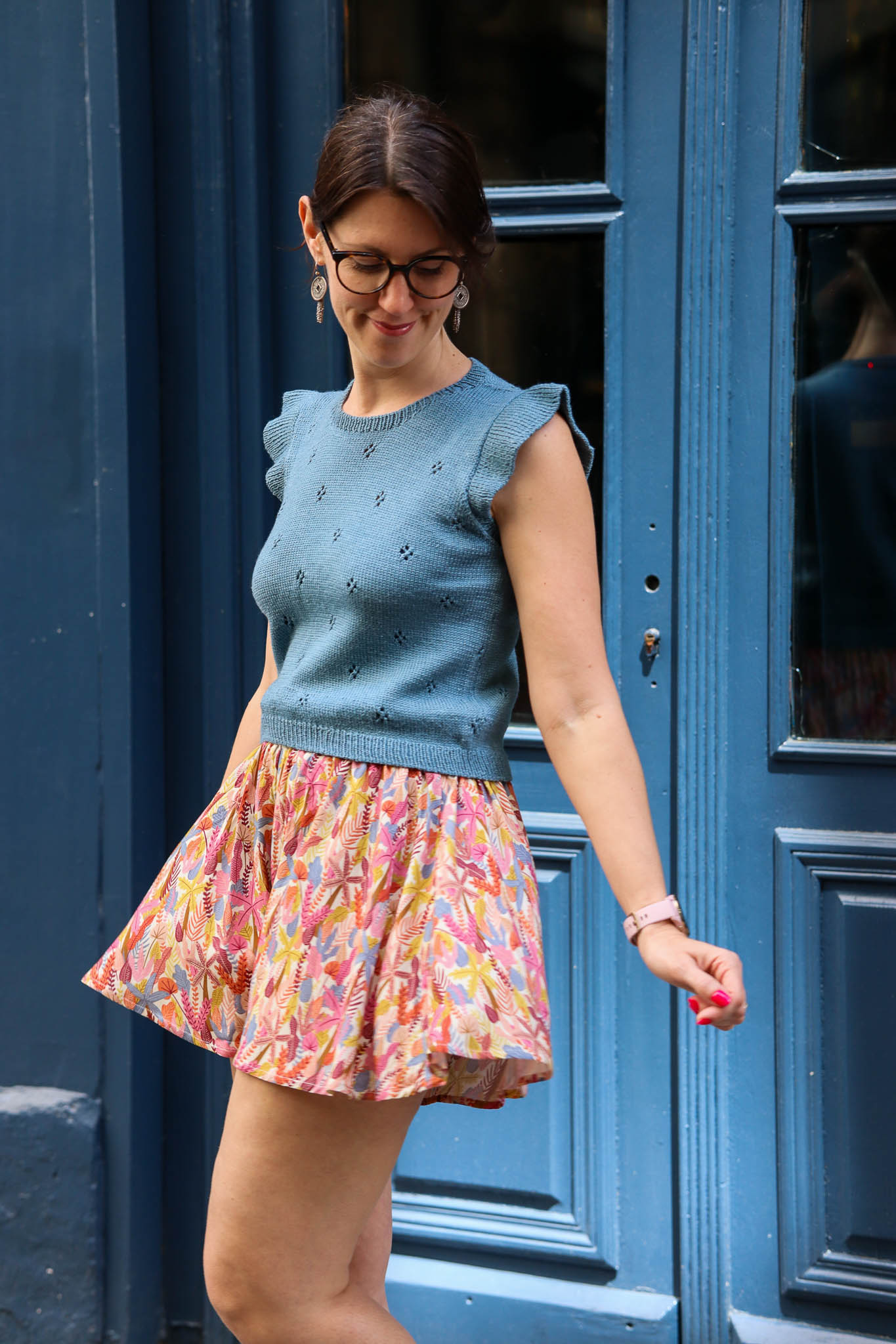 Lise P. porte le Slipover Opale