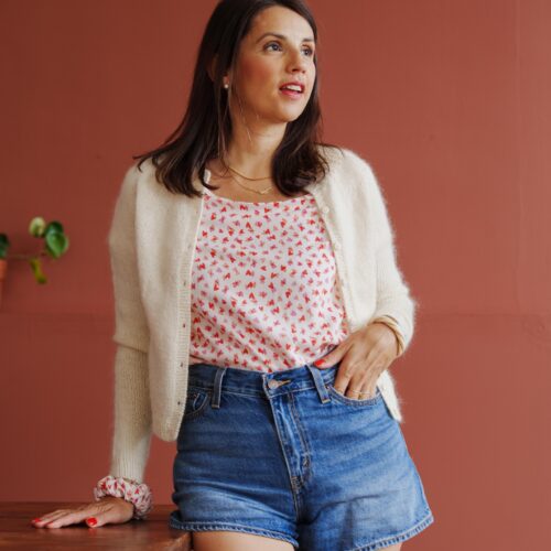 Céline porte le gilet Rosée DK