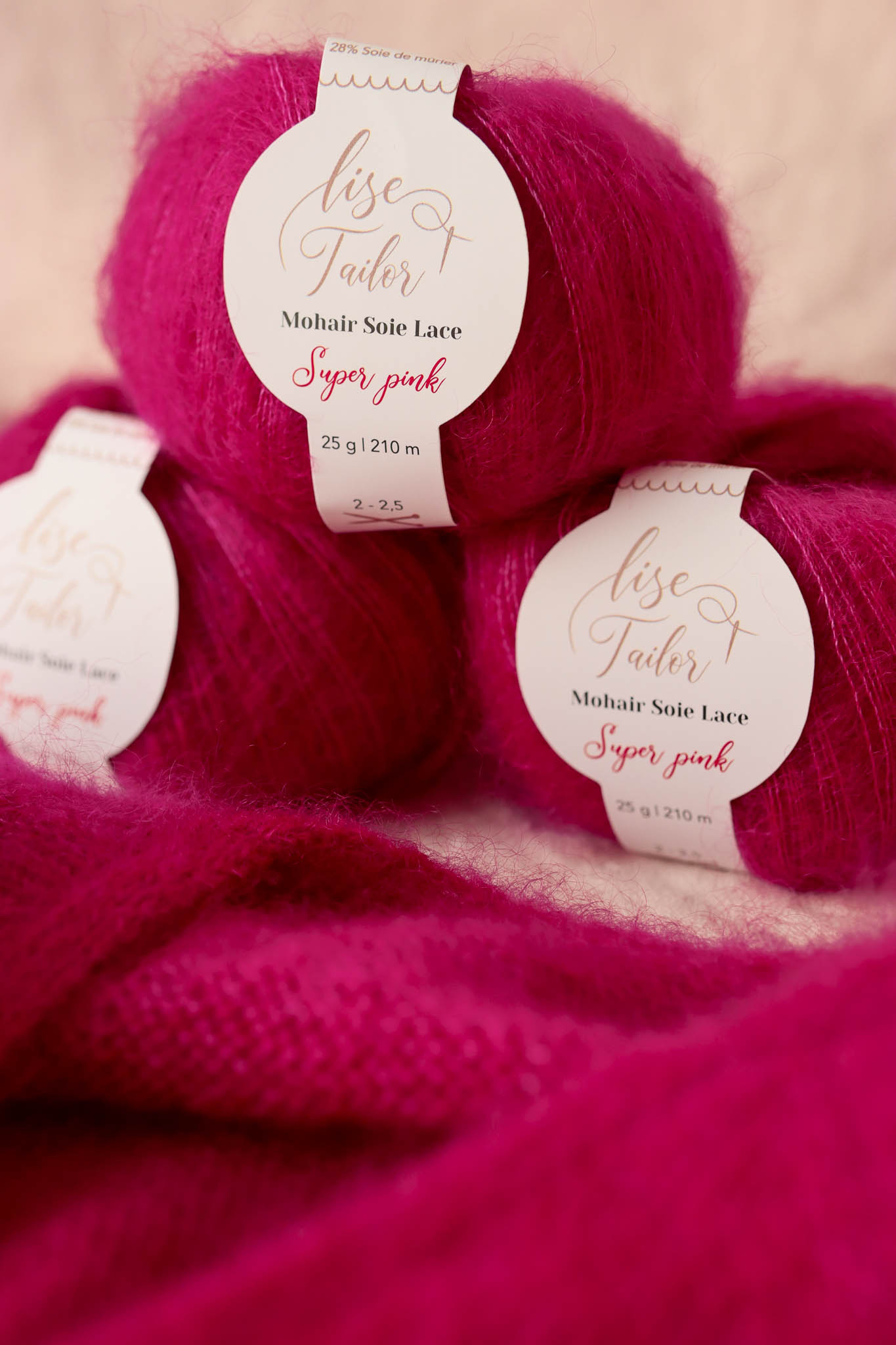 Notre coloris Super Pink pour la base mohair & soie a été modifié pour une plus grande intensité de couleur (voir la différence de couleur sur les photos). Si vous avez besoin d’un réassort de l’ancienne colorisation, merci de nous contacter.