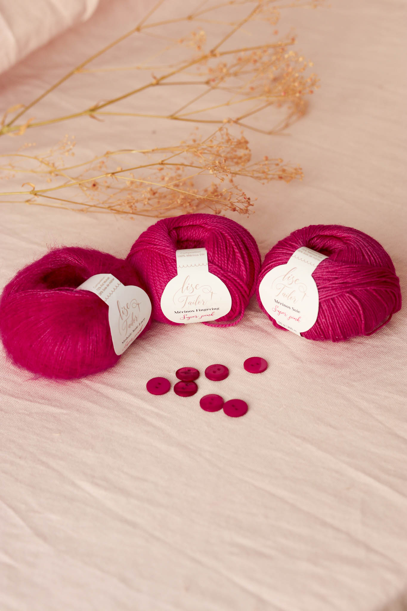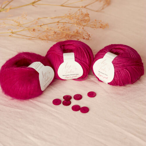 Tous les boutons coloris Fuchsia se marieront à merveille avec cette laine
