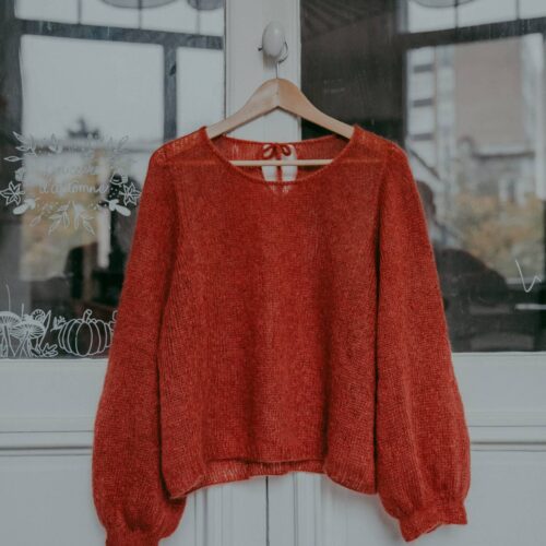 Lise P. porte le pull Anémone de Nale et le pull Génoise de Lolilafée.