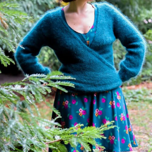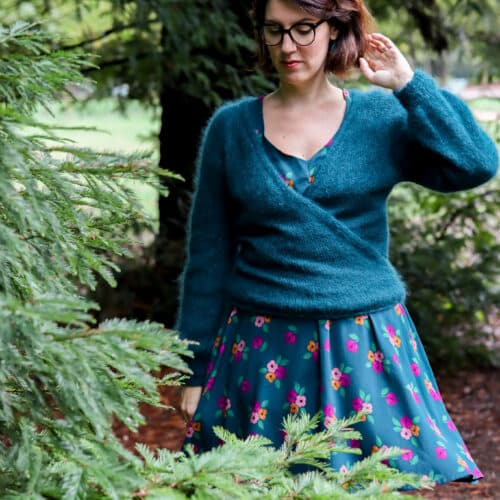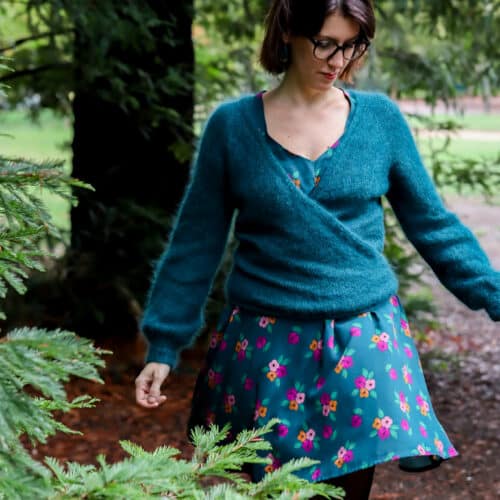 Lise P. porte le pull Malya de Lise Tailor et le cache-coeur Naëlle de Lise Tailor
