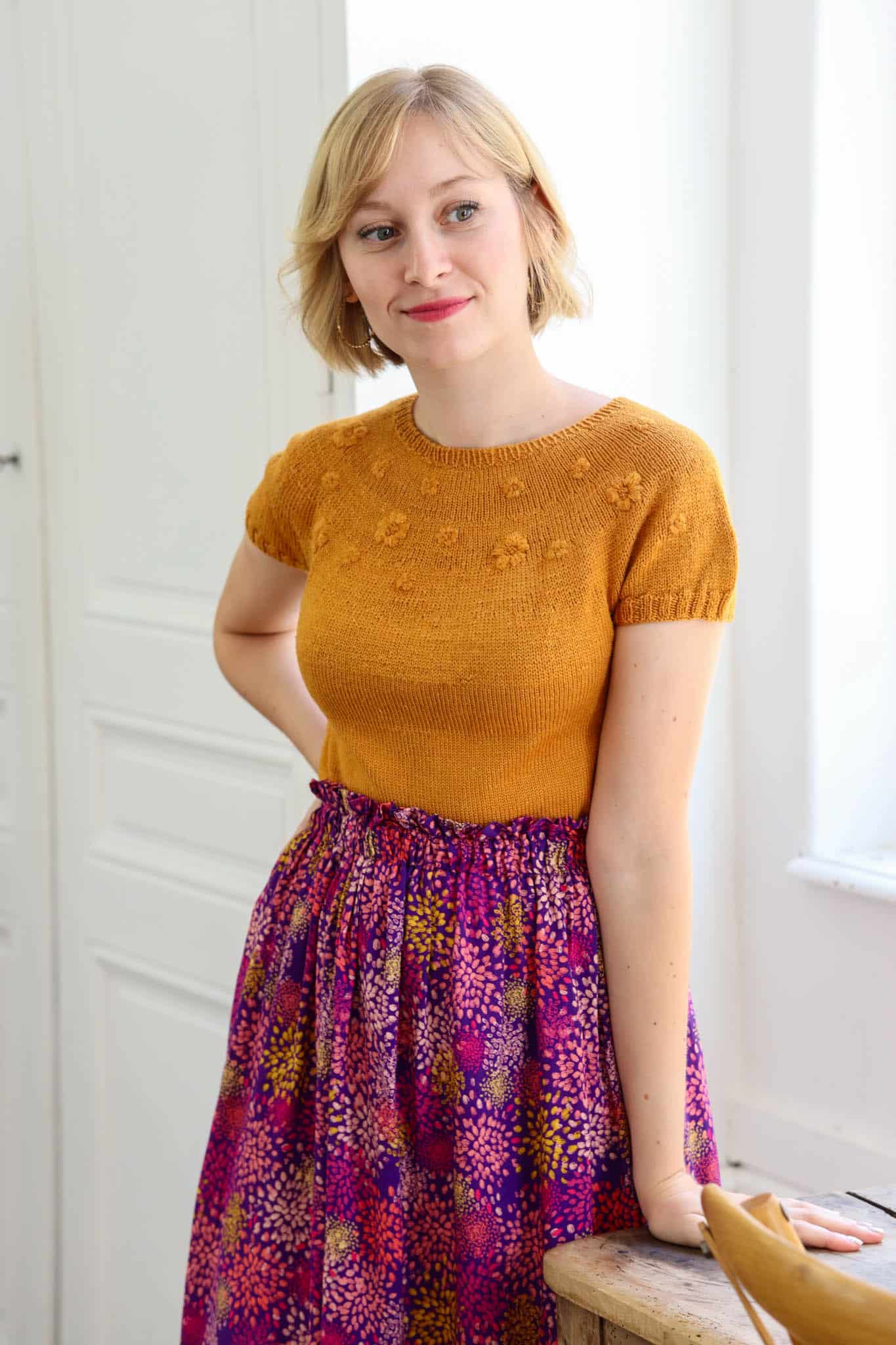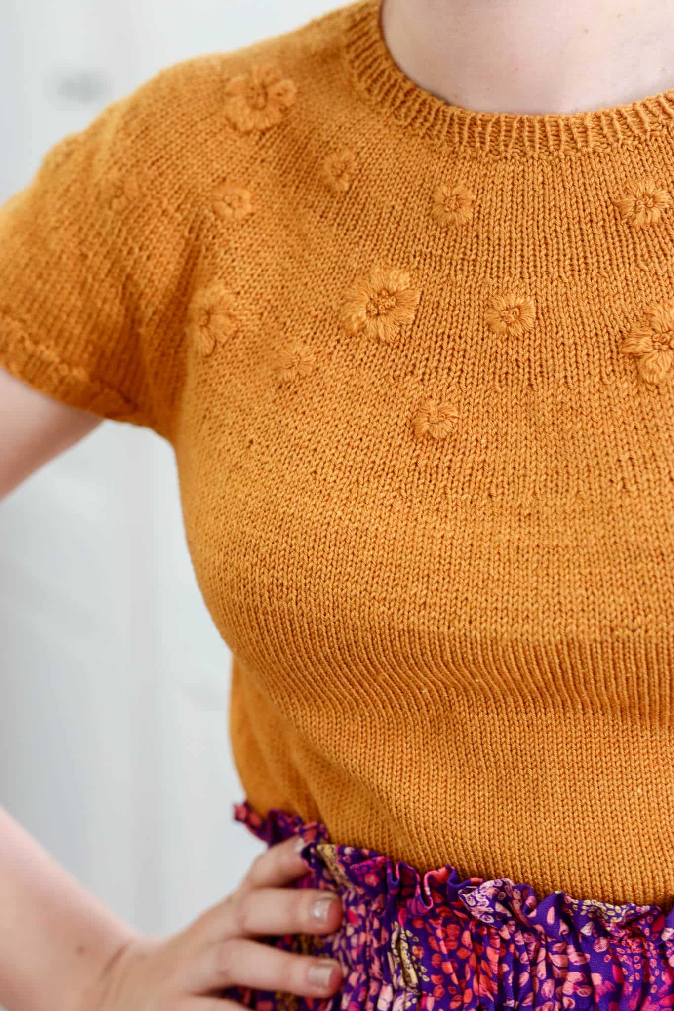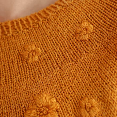 - Le corps de Rosée est tricoté au point jersey en circulaire