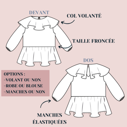 – Le patron propose une version avec manches et sans manche ainsi qu’une version blouse.