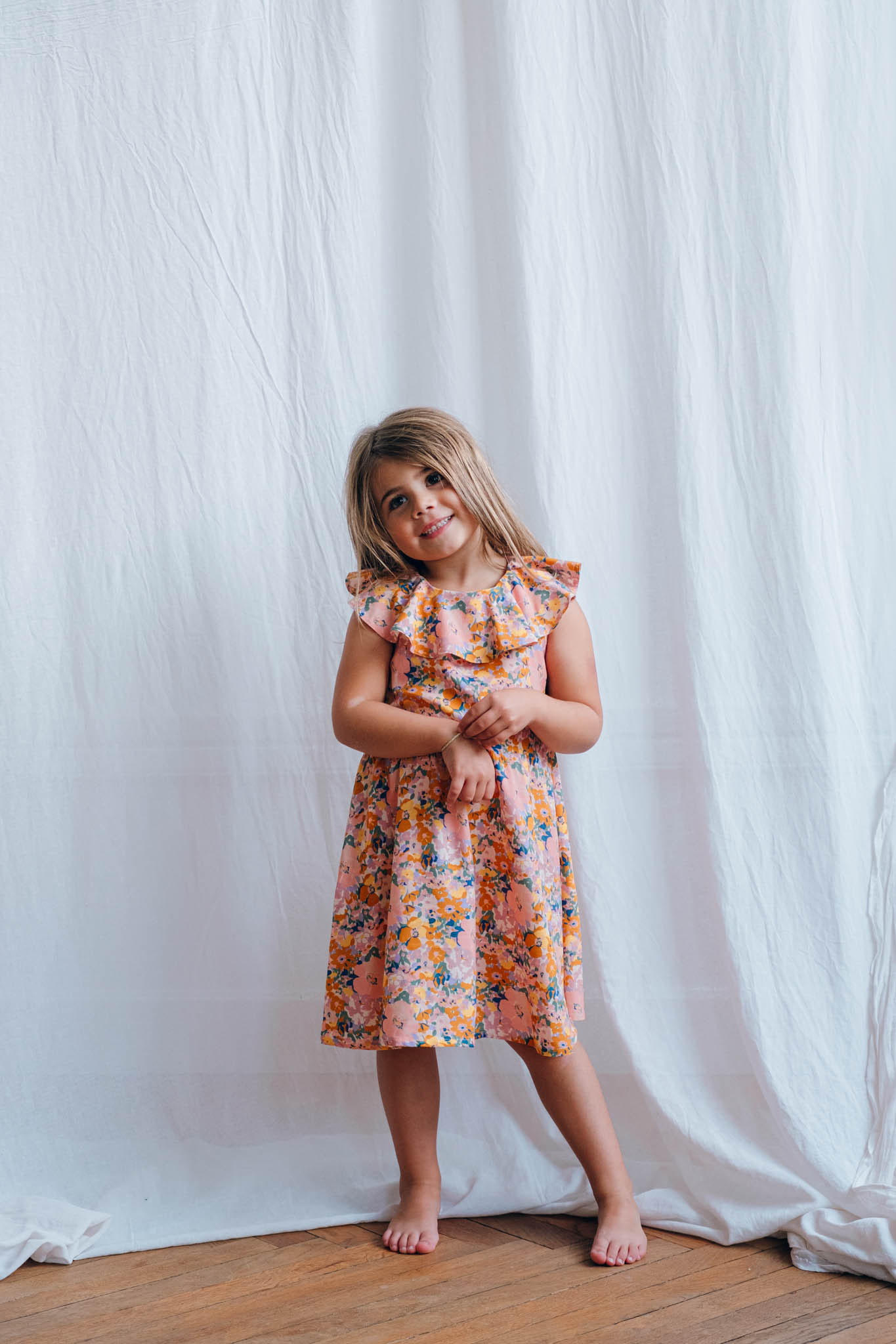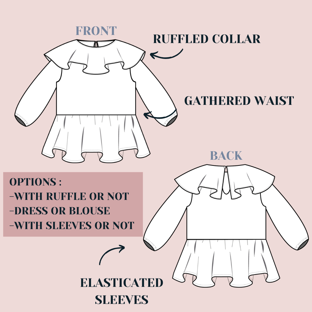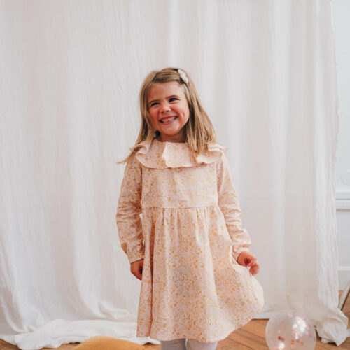 Garenne est une jolie robe déclinable en blouse avec ou sans manches. Votre enfant sera libre de ses mouvements grâce à l’ampleur de la jupe.