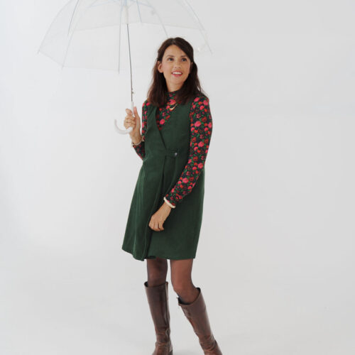 Notre robe chasuble cache-cœur est une pièce facile à vivre et pleine de style. Avec sa coupe trapèze et son encolure en V croisée, elle se porte en superposition pour varier les looks au fil des saisons. Deux options de fermeture s’offrent à vous : une patte boutonnée ou une bride avec demi-anneau. Finie grâce à une parementure, les finitions intérieures de Dorothea sont impeccables.