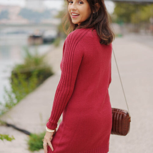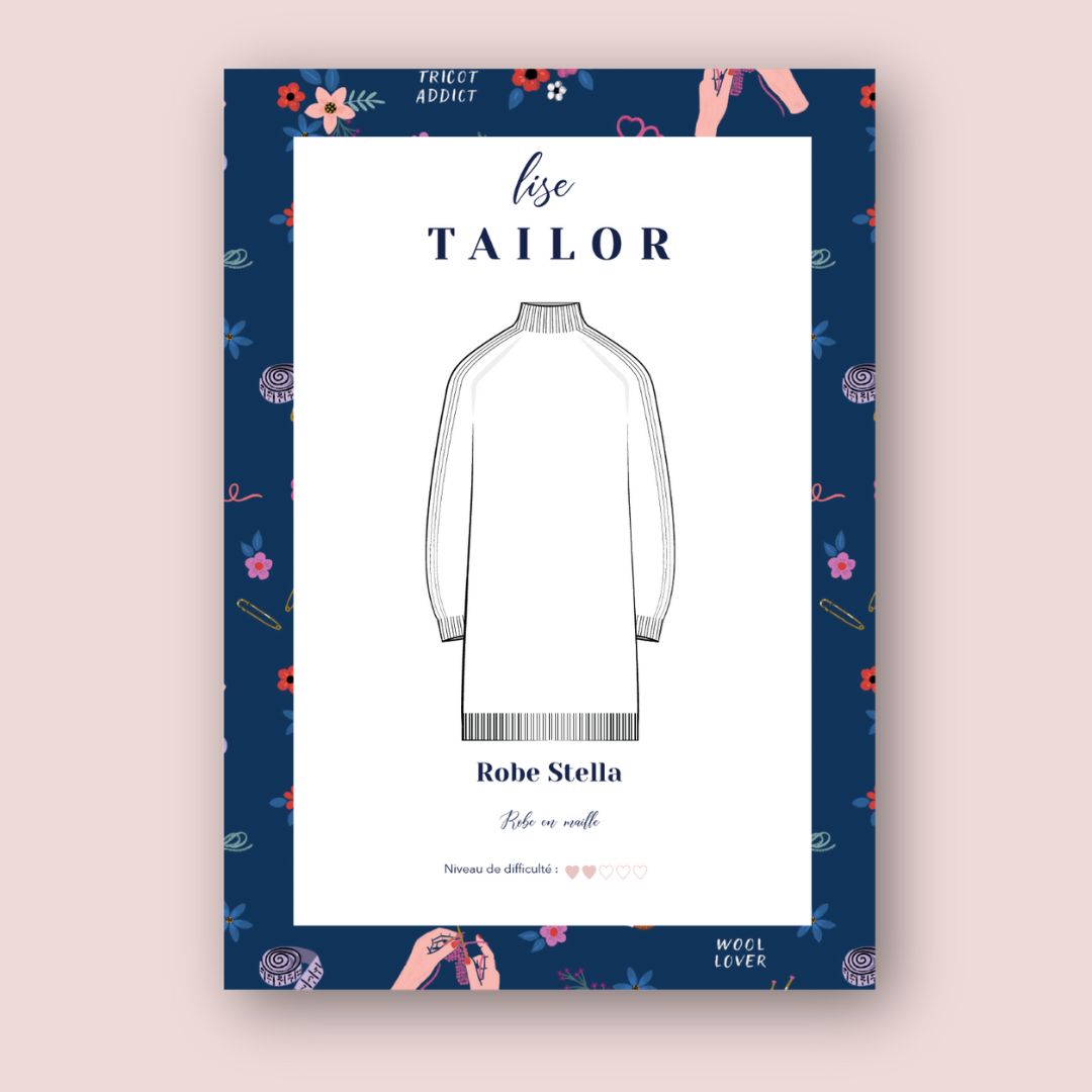 La robe Stella se tricote de haut en bas, avec des manches marteau mises en valeur par un joli jeu de côtes tout le long des manches. Son col cheminée et sa longueur ajustable en font un modèle très polyvalent : vous pouvez la tricoter en version mi-cuisse, longue, ou même en pull confortable.
