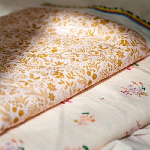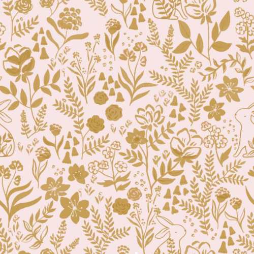 Garenne enchantée est un motif enchanteur qui raconte une histoire de nature et de découvertes. Parmi les fleurs et les feuilles, un petit lapin se cache, presque invisible à première vue. Ses oreilles pointues et son petit museau curieux émergent timidement derrière les feuillages, ajoutant une note de jeu et de mystère au motif. Ce lapin, dans les mêmes teintes d’ocre doré, semble faire partie intégrante des fleurs enchantées, un petit secret à découvrir. Le fond rose très pâle, doux et apaisant, crée une ambiance de tendresse et de sérénité. Ce motif à la dimension ludique, stimule l’imagination. Ce motif sera parfait pour une robe de petite fille qui prendra plaisir à donner vie à ses rêves. Il l’accompagnera volontiers tant dans ses jeux et découvertes que dans un cocon douillet.