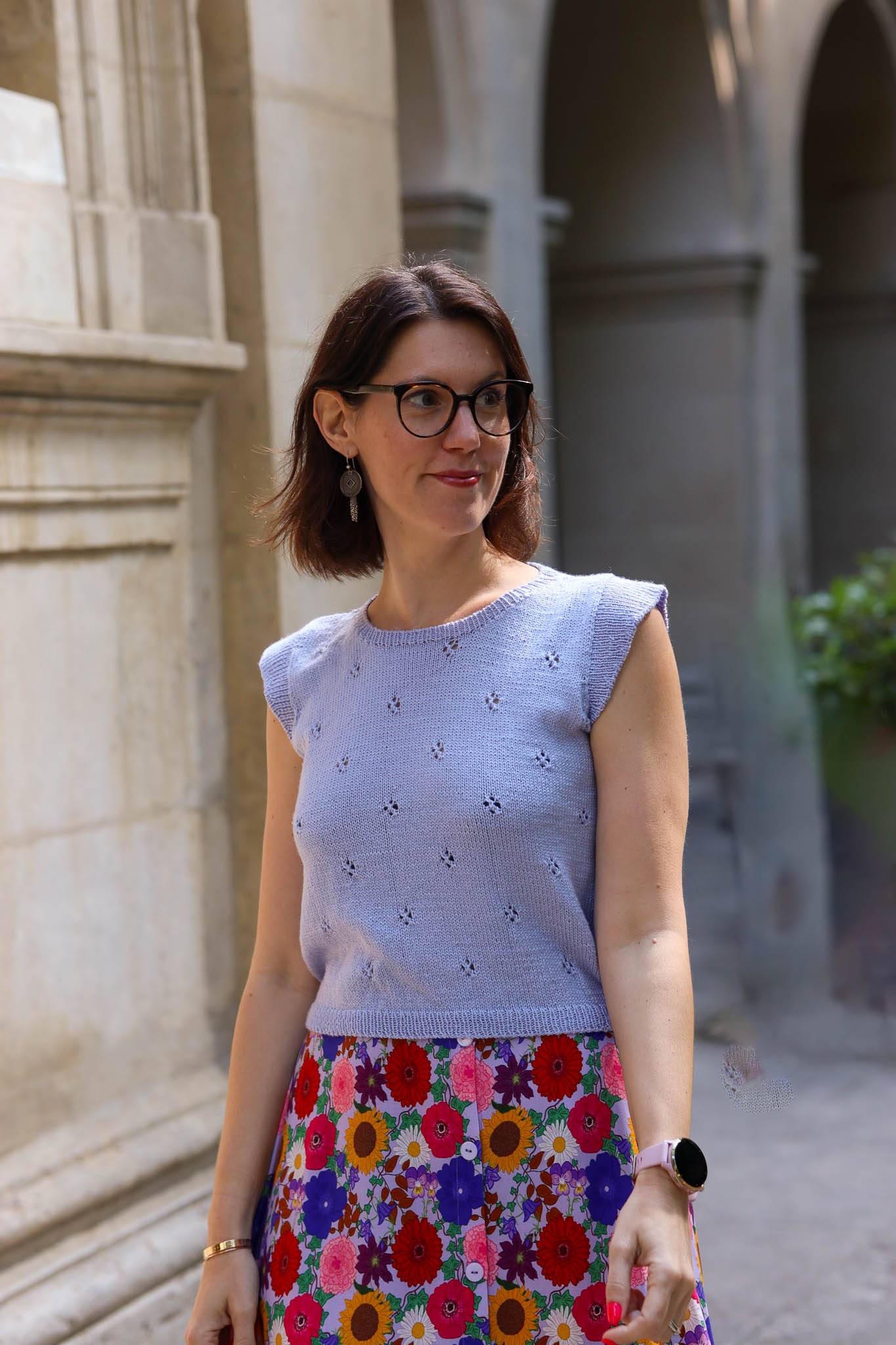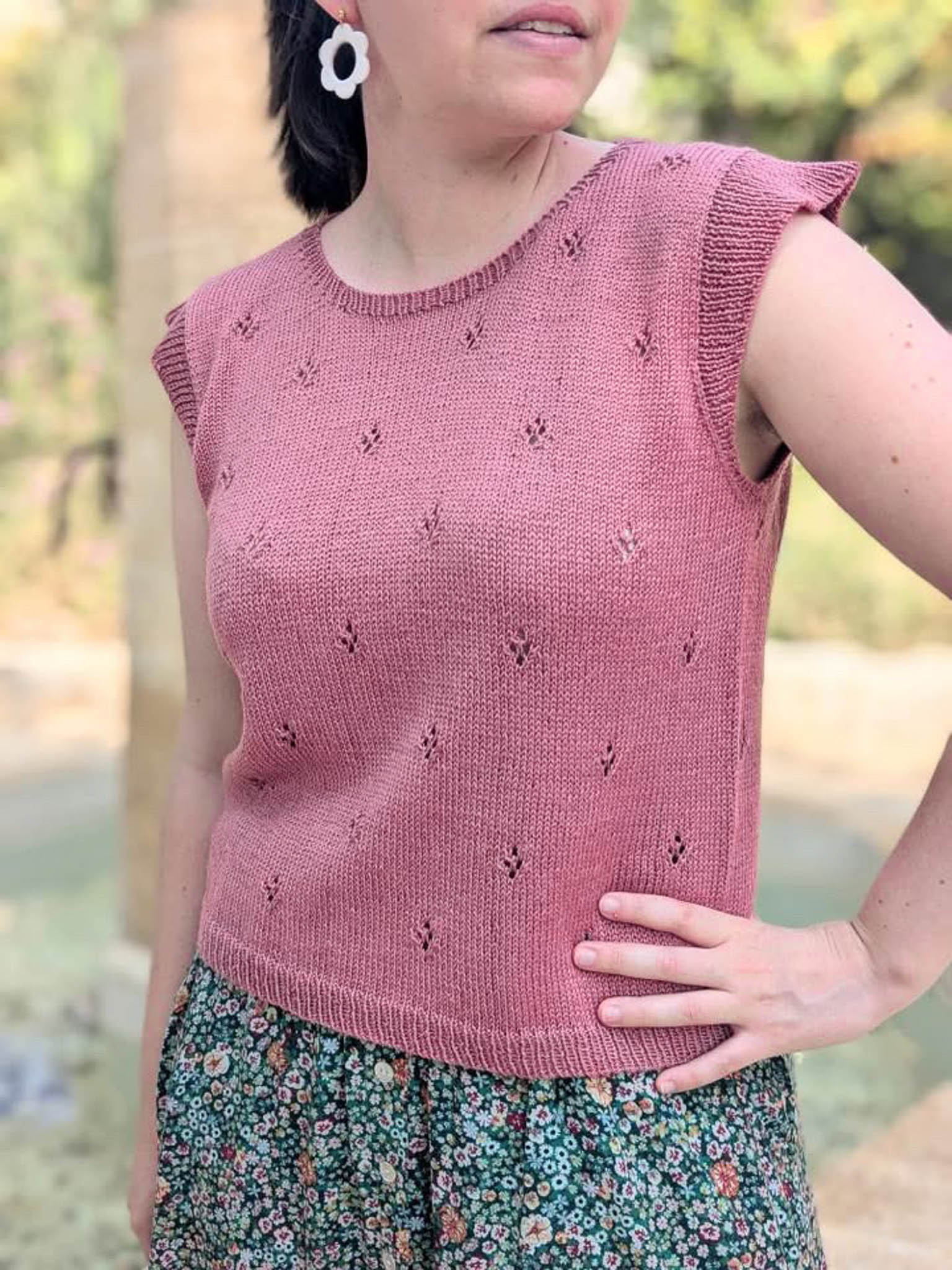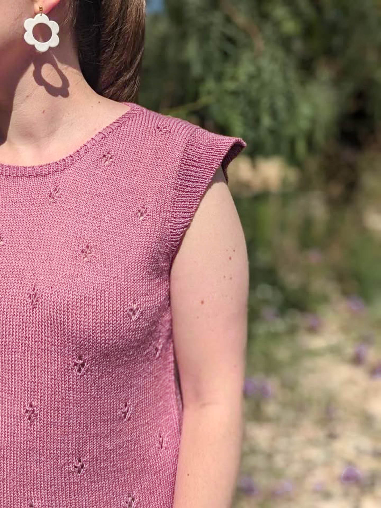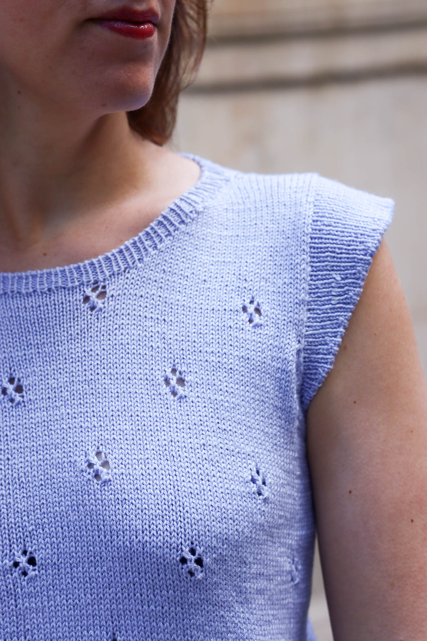 - Le corps de Opale est tricoté au point jersey en circulaire avec un joli point ajouré losange