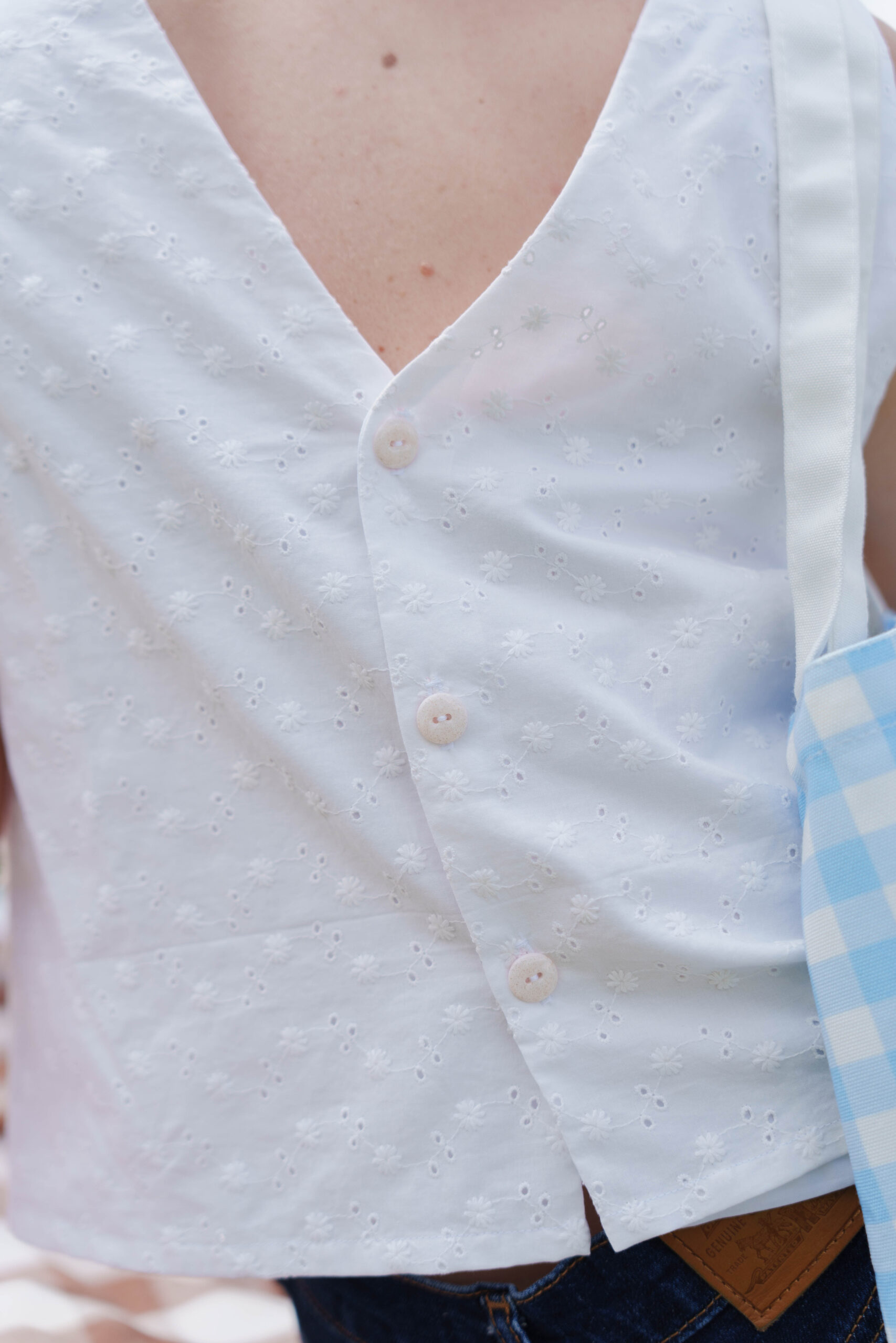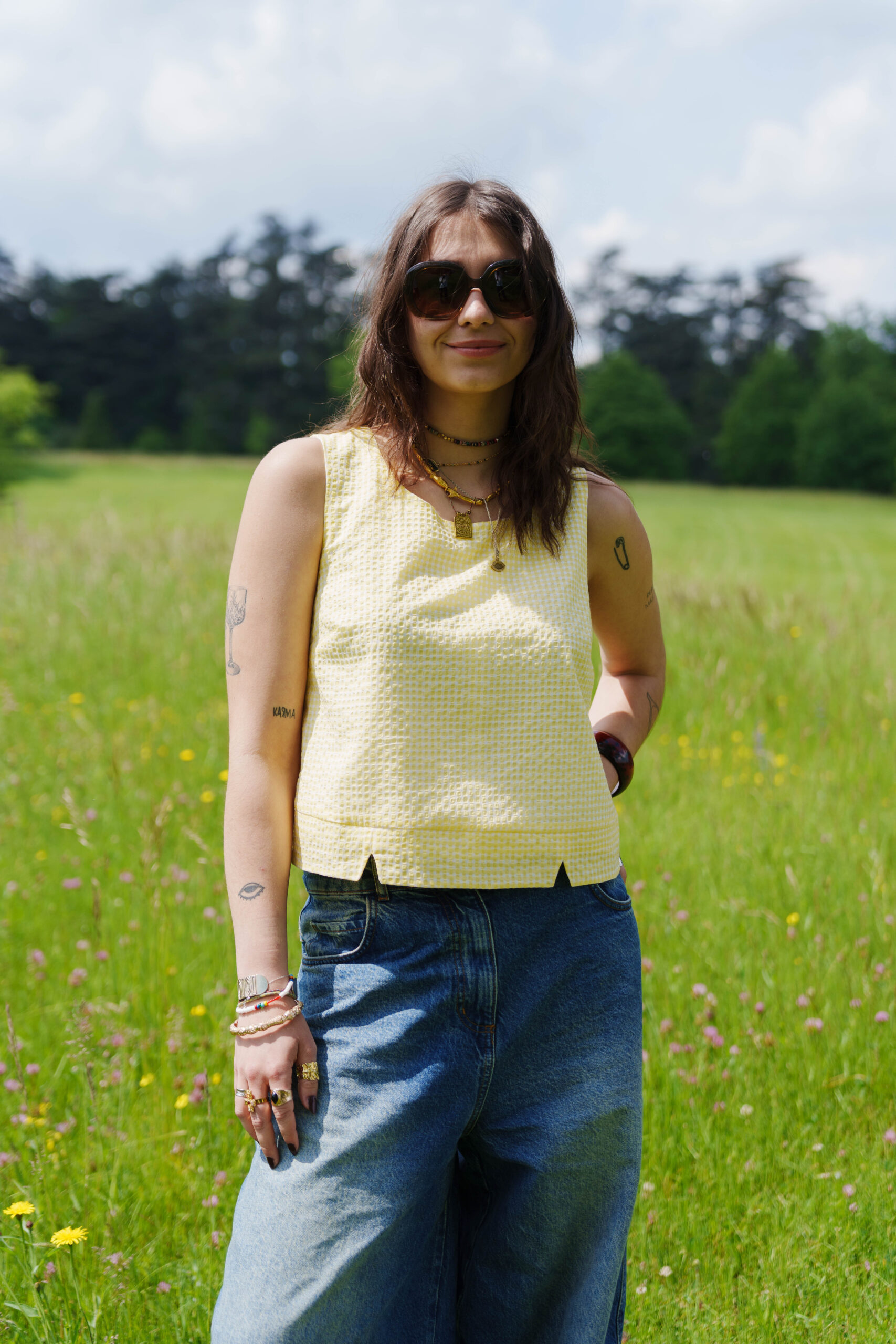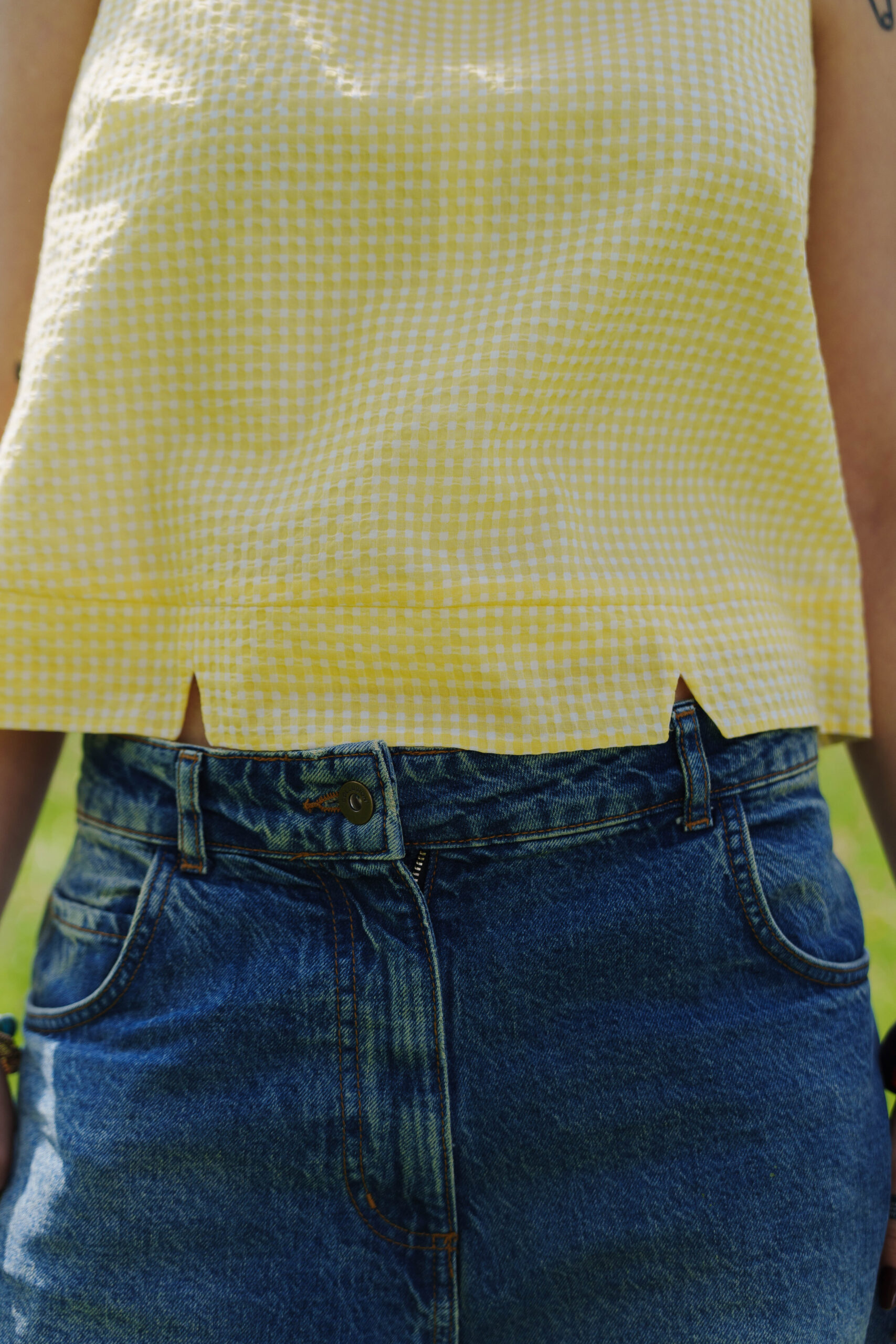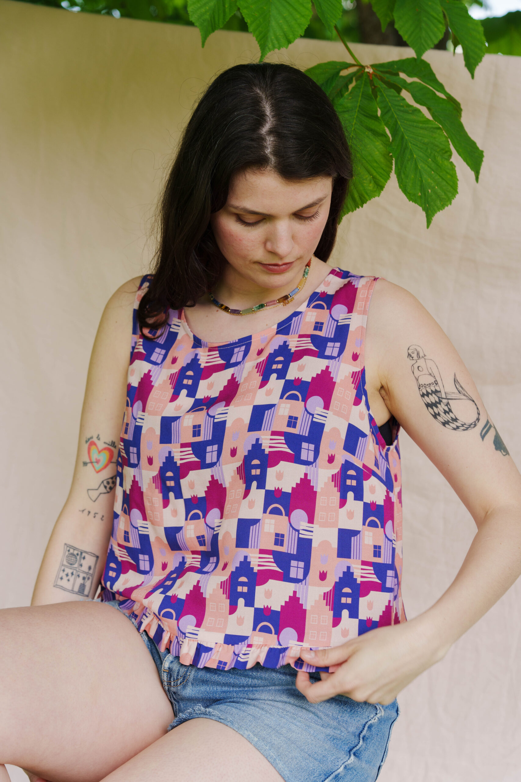 Pour réaliser ce top, nous vous conseillons d’utiliser un tissu fin type viscose, satin de coton, lin viscose… Il peut également être réalisé dans un tissu avec plus de tenue comme une gabardine ou un denim. (Le patronage est prévu pour un tissu en chaîne et trame).