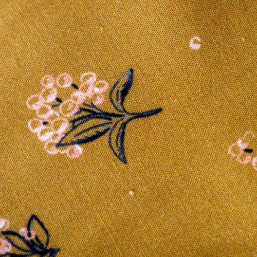 Dans un coin douillet de notre jardin, Floréale nous invite à la contemplation de ce petit trésor végétal, le groseillier. Tel un gardien des souvenirs estivaux, les petites sphères de couleur pêche offrent une promesse de douceur. Dans les nervures fines et élégantes, chaque feuille crayonnée porte la trace des saisons passées. Le fond ocre brun avec une subtile nuance de vert kaki est empreint de sérénité. Sous la bienveillance du groseillier, on se sent protégée, comme dans un cocon de nature. Chaque coin de jardin se transforme en refuge de calme et de beauté, où l’on peut se ressourcer et se reconnecter aux rythmes doux de l’hiver. Ce motif on le porte sur tout et partout ; de la blouse qu’on aime associer avec un gilet avec notre nouvelle couleur Pêche, à la robe en passant par la jupe. Un basic agréable pour une journée confortable.